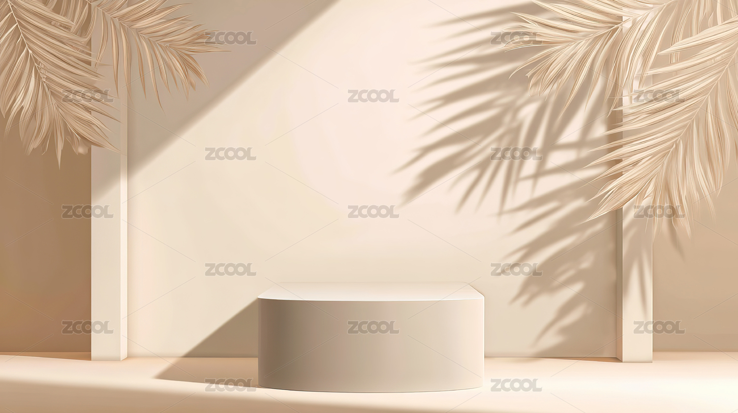 简约白色展台与棕榈叶影