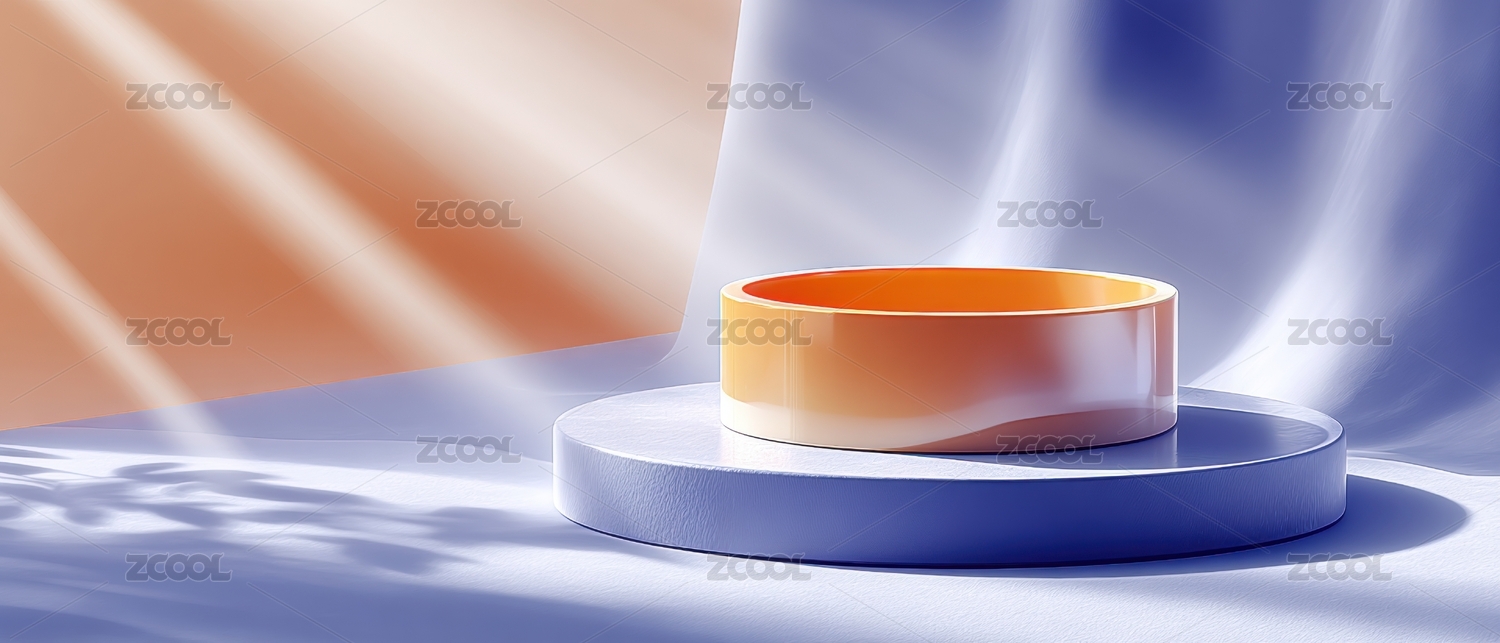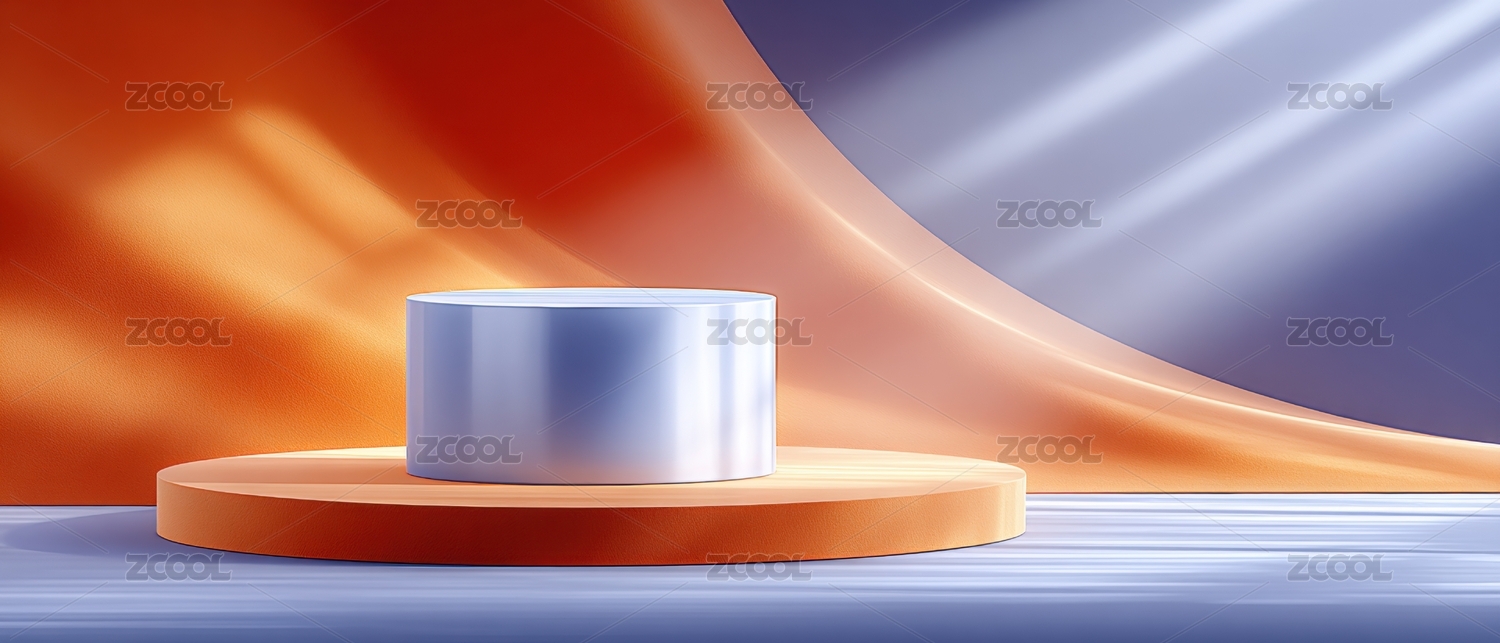现代简约风格的蓝色圆柱形展示台