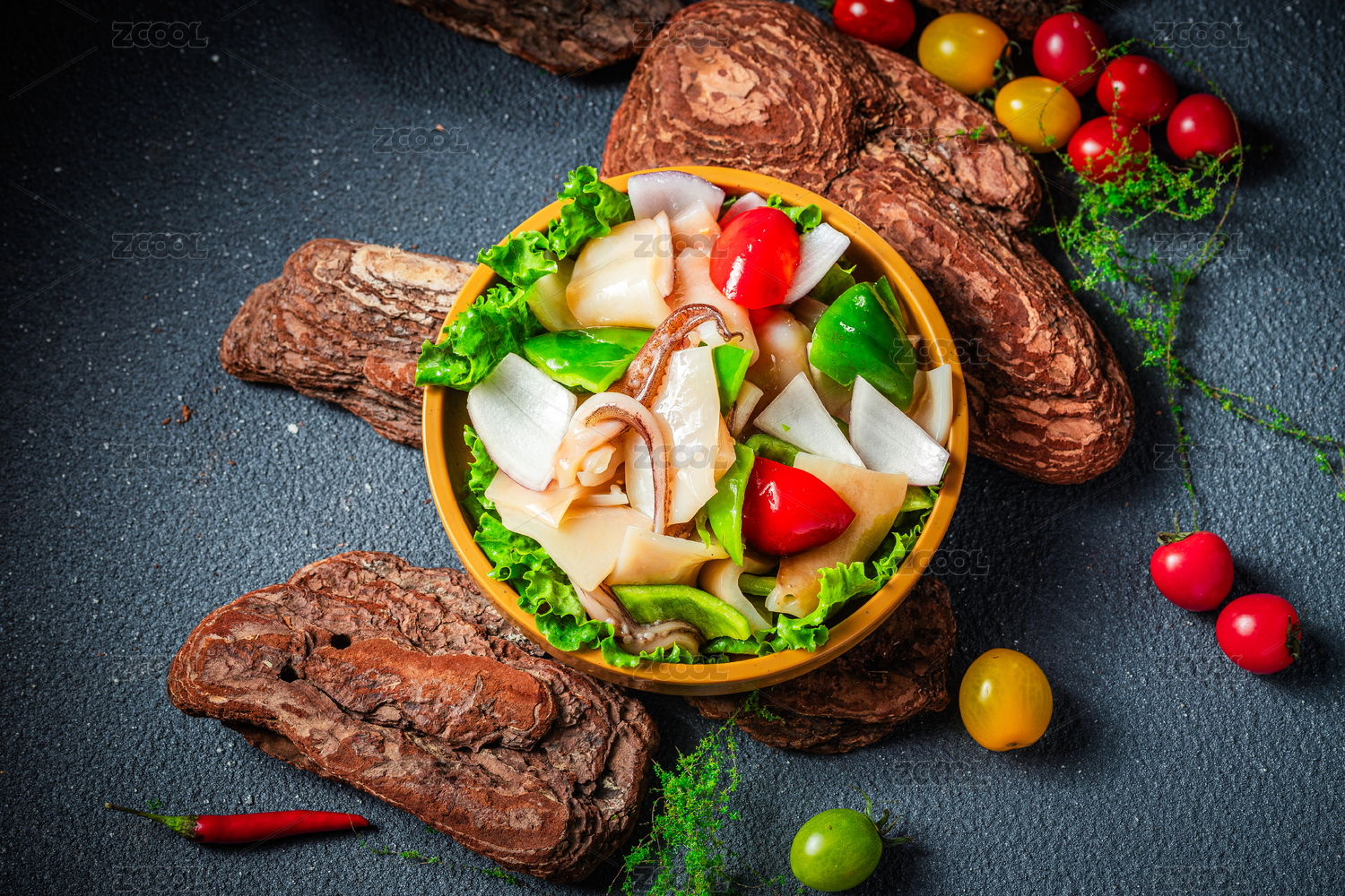 鲜拌牛肉片,烧肉,暗色调,黑背景,生肉,生鲜,圣女果,生菜叶
