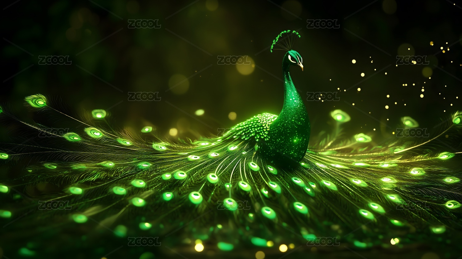 元宇宙数字成像一只绿色的孔雀