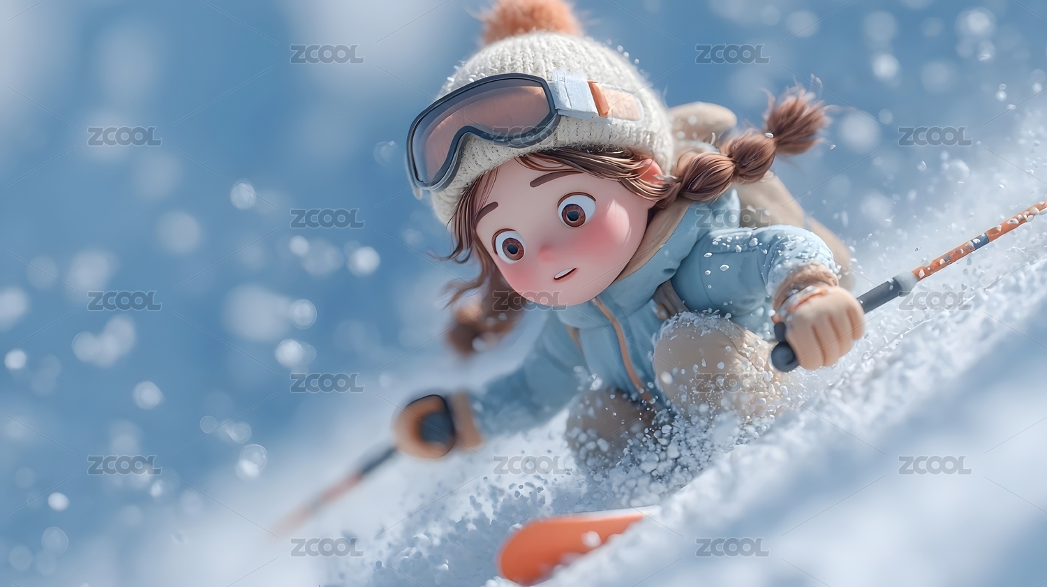 冰雪女孩快乐滑冰冬季童趣蓝白系