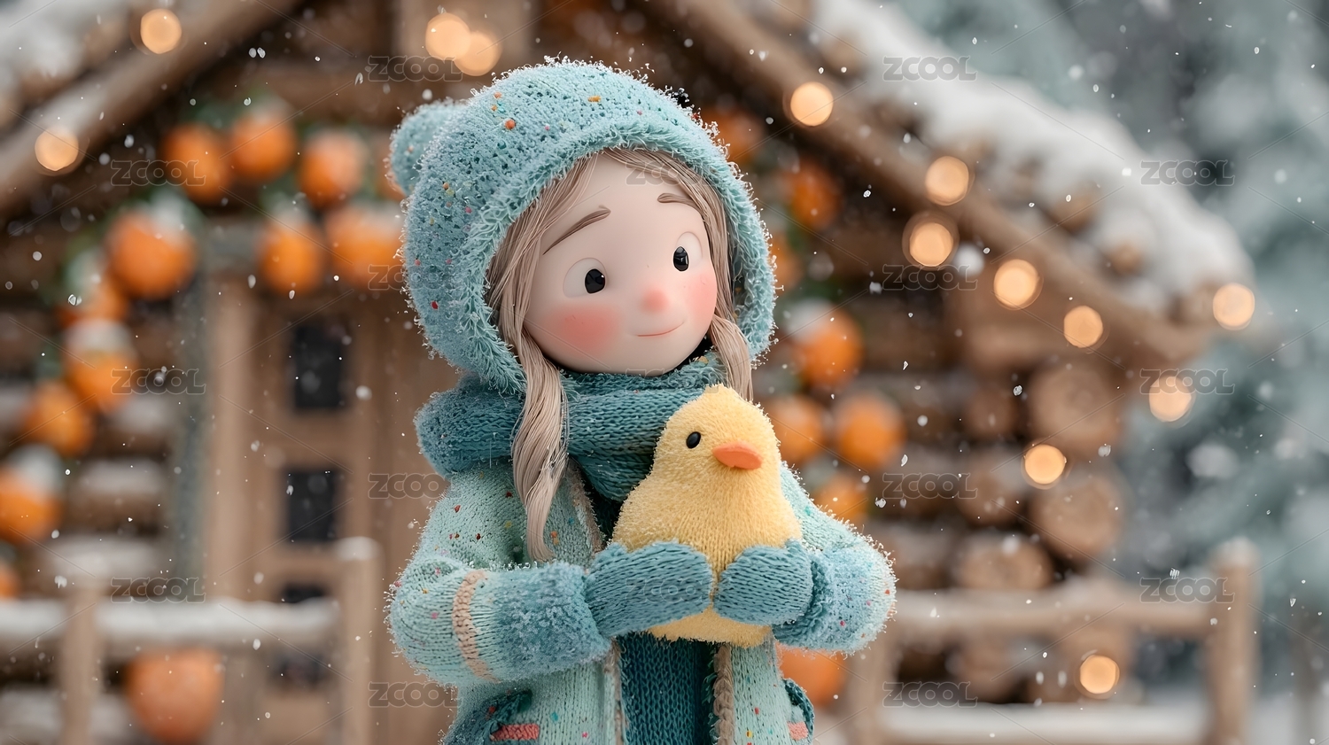 雪中可爱玩偶冬日场景