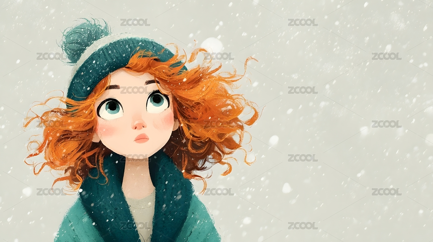 冬日雪中红发女孩
