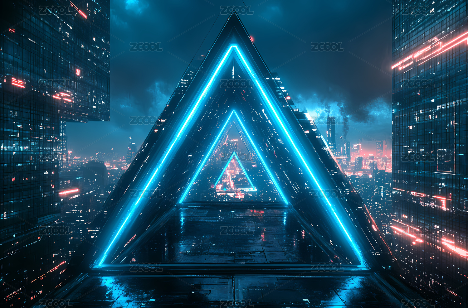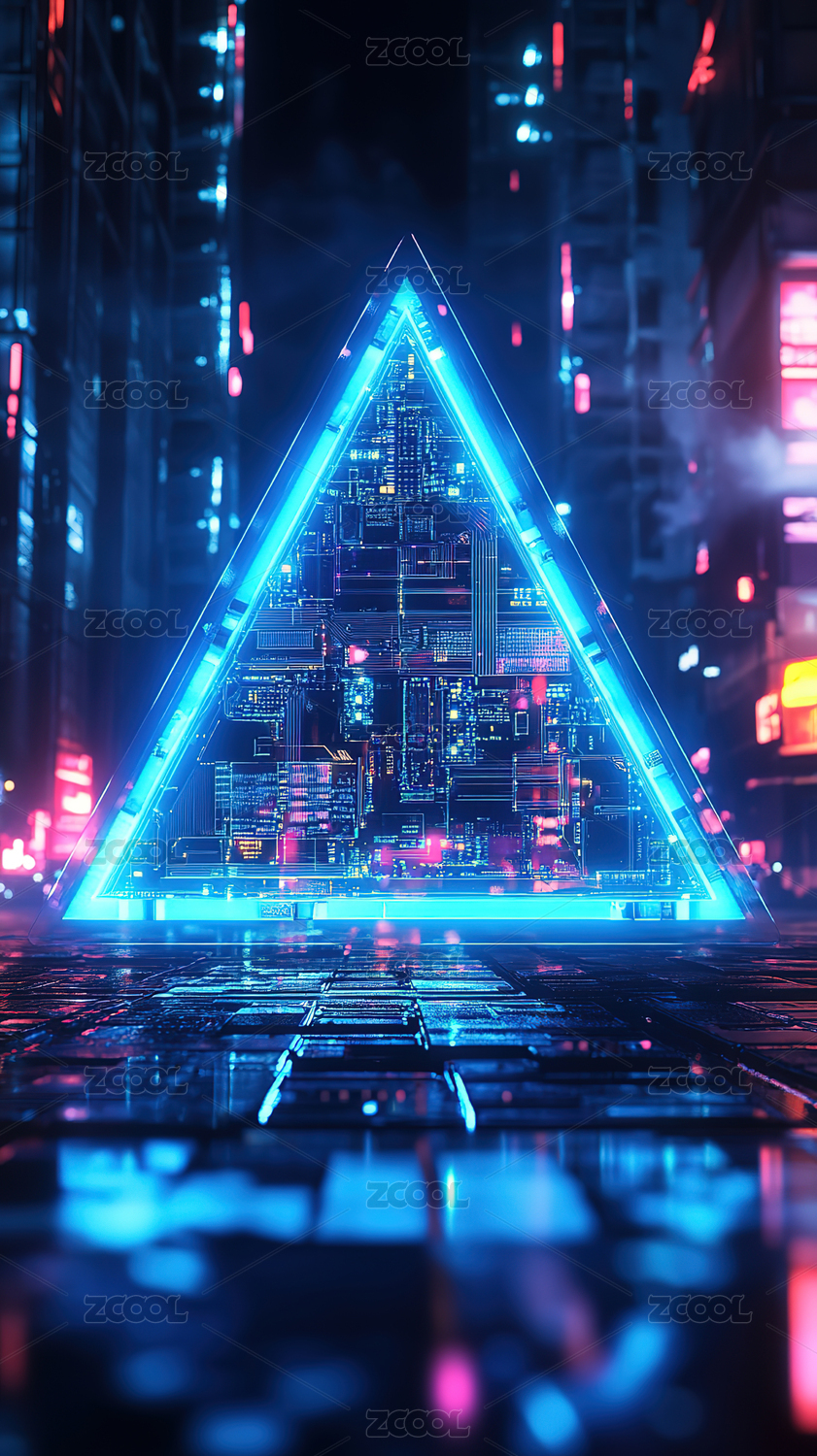 霓虹三角形通道通往未来城市
