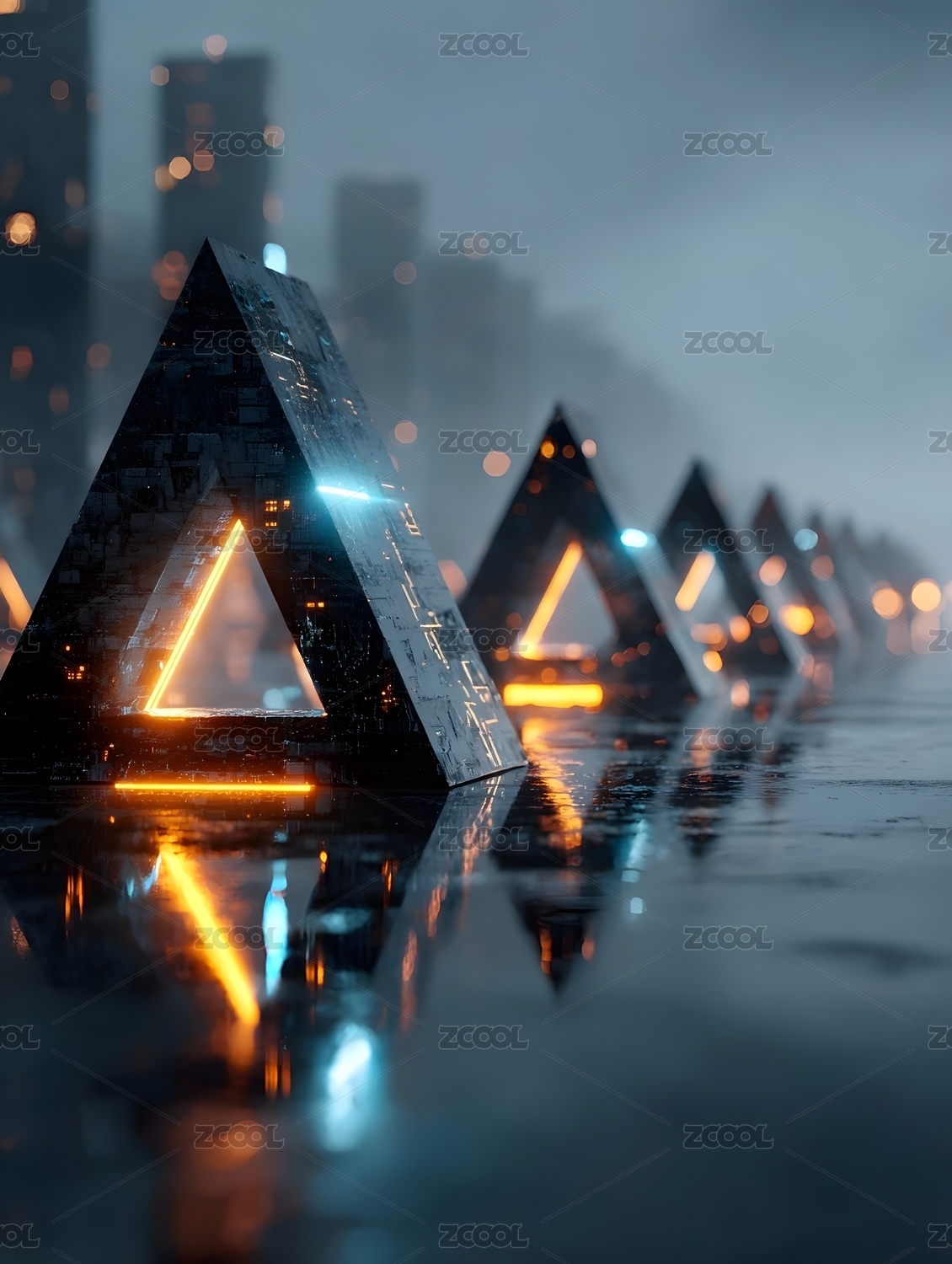 未来科技三角形城市夜景