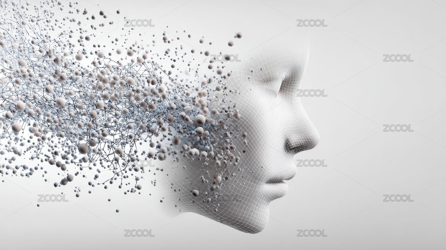 3D女性头部逐渐消融为数字碎片