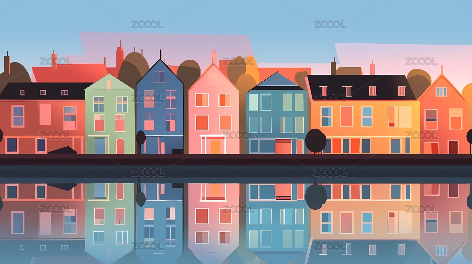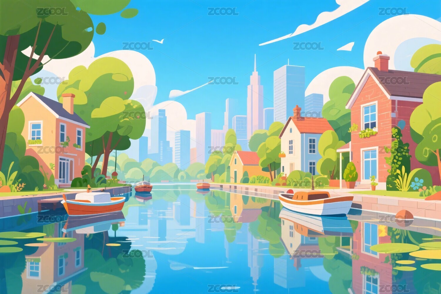 设计,色彩,自然,插图,风景,数字,简约,夏天,未来,田园
