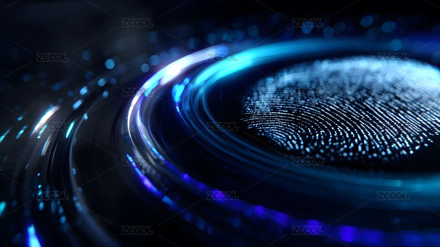蓝色指纹光效科技感背景