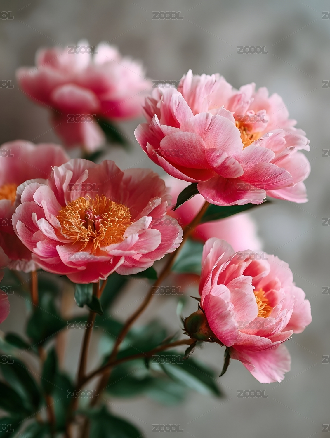 盛开的粉色牡丹花束