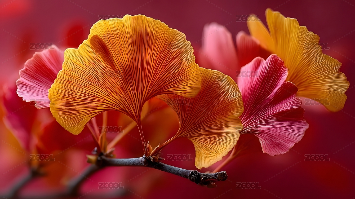 银杏叶红色背景艺术装饰