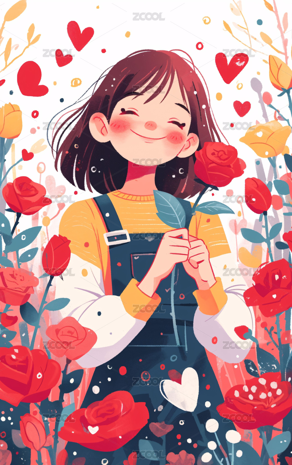 红发女孩与玫瑰花