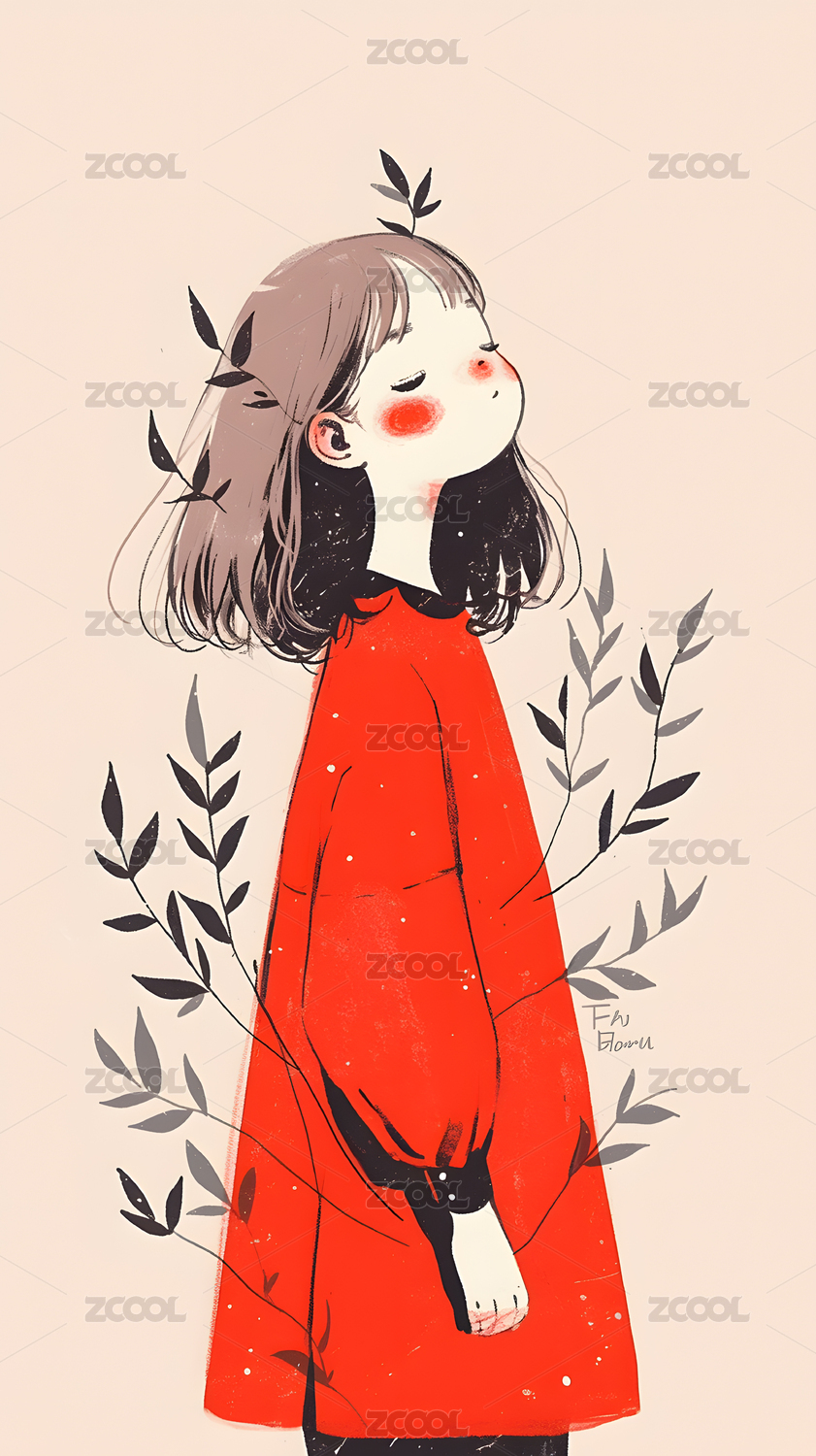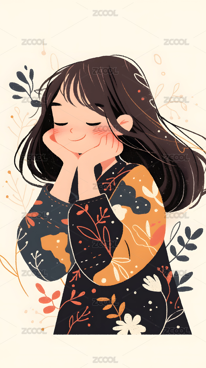 抽象卡通可爱女孩插画