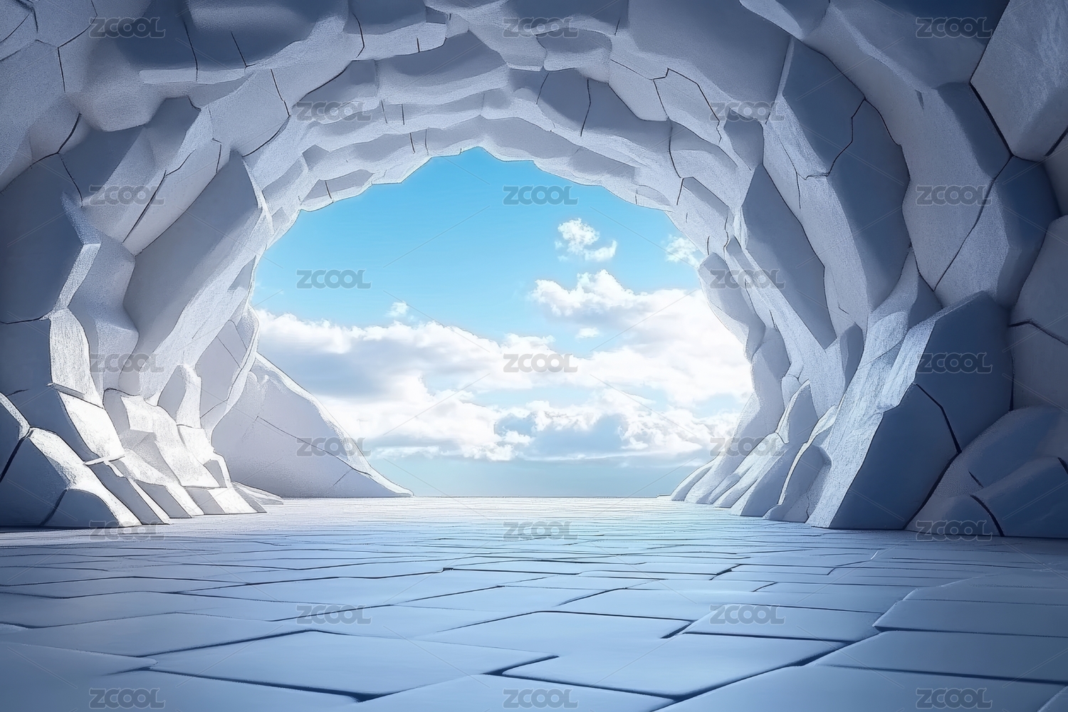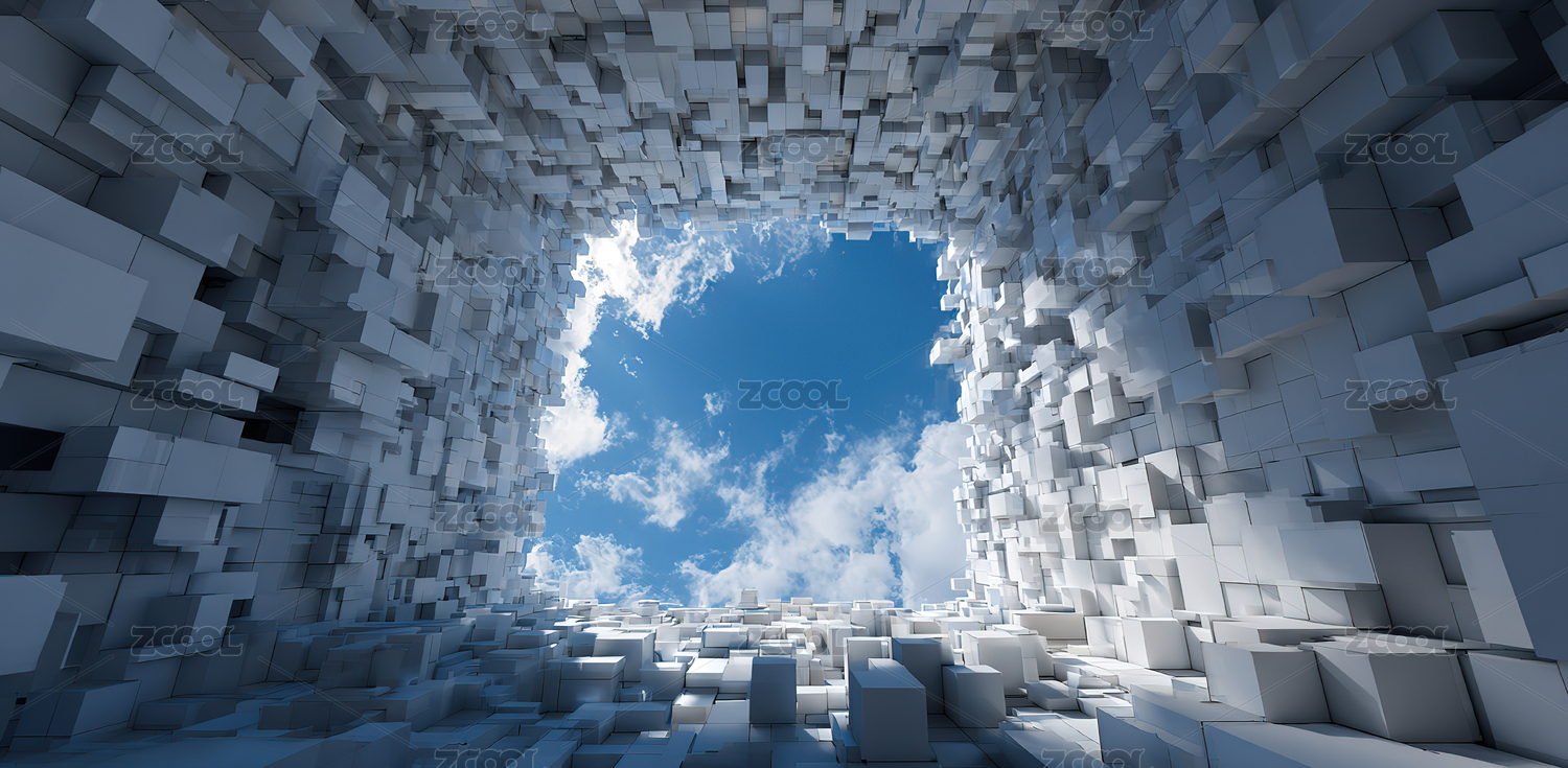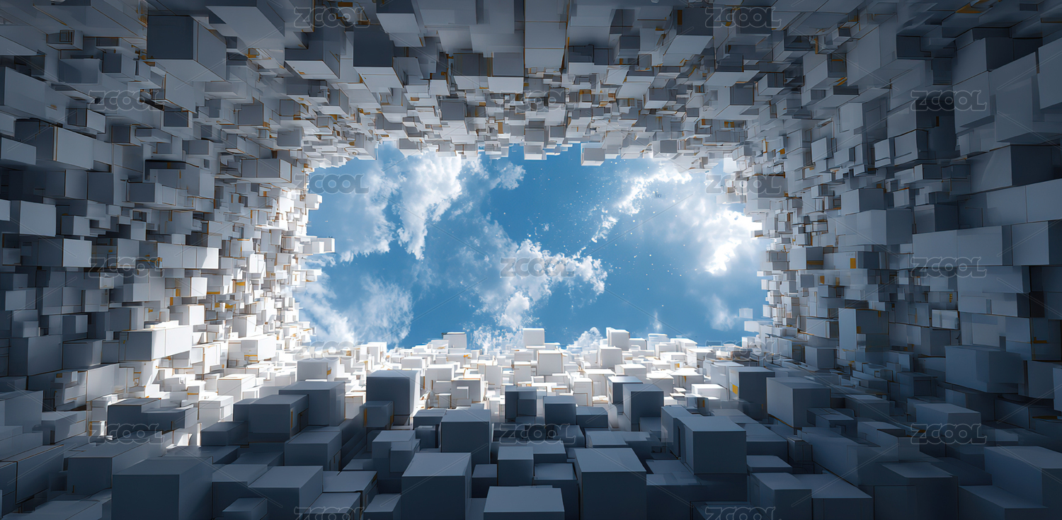 立方体隧道通向蓝天
