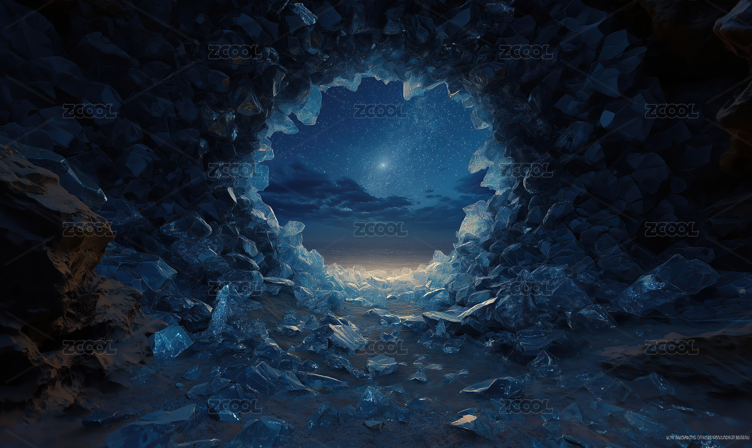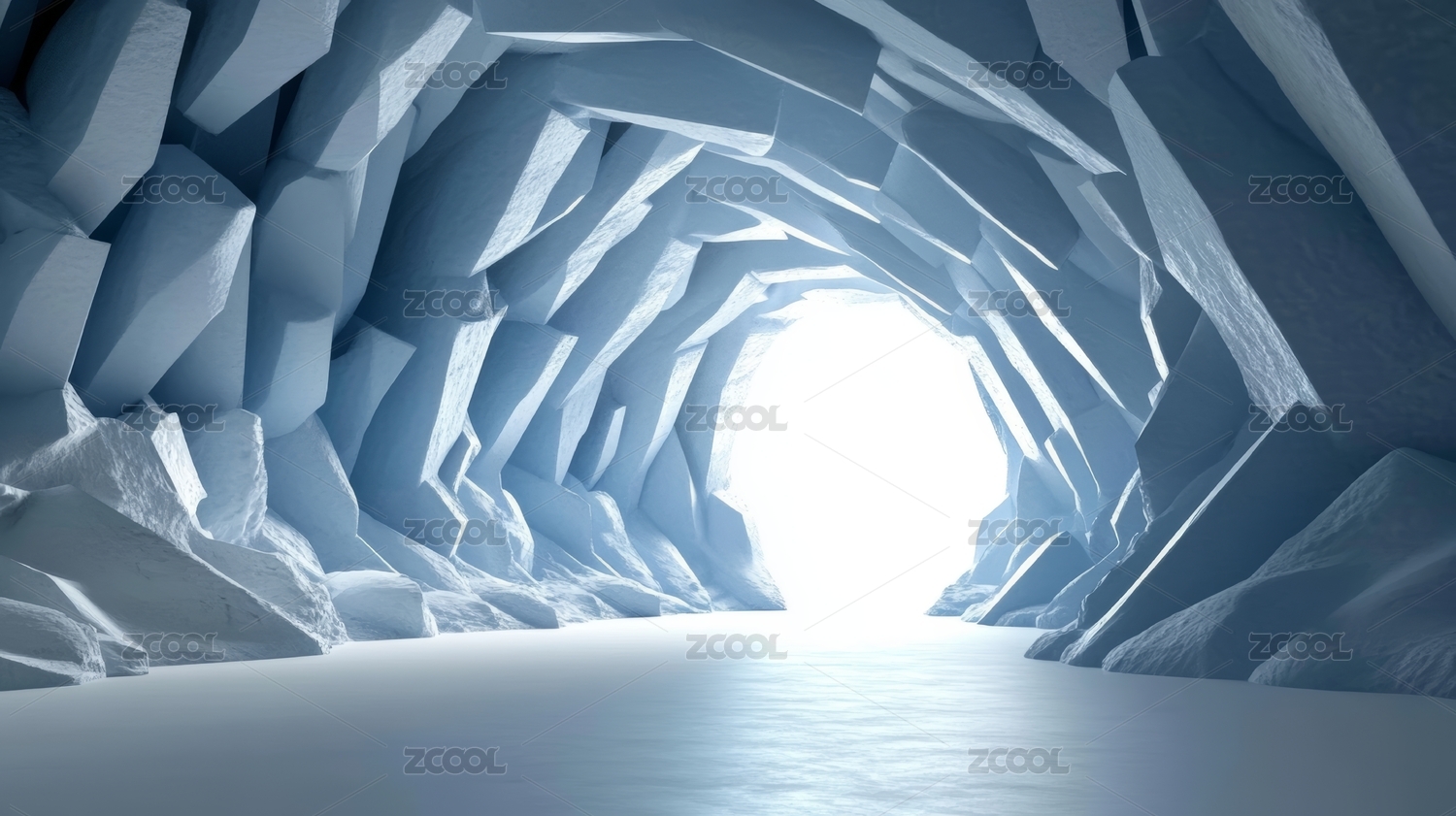 抽象蓝色洞穴尽头的光