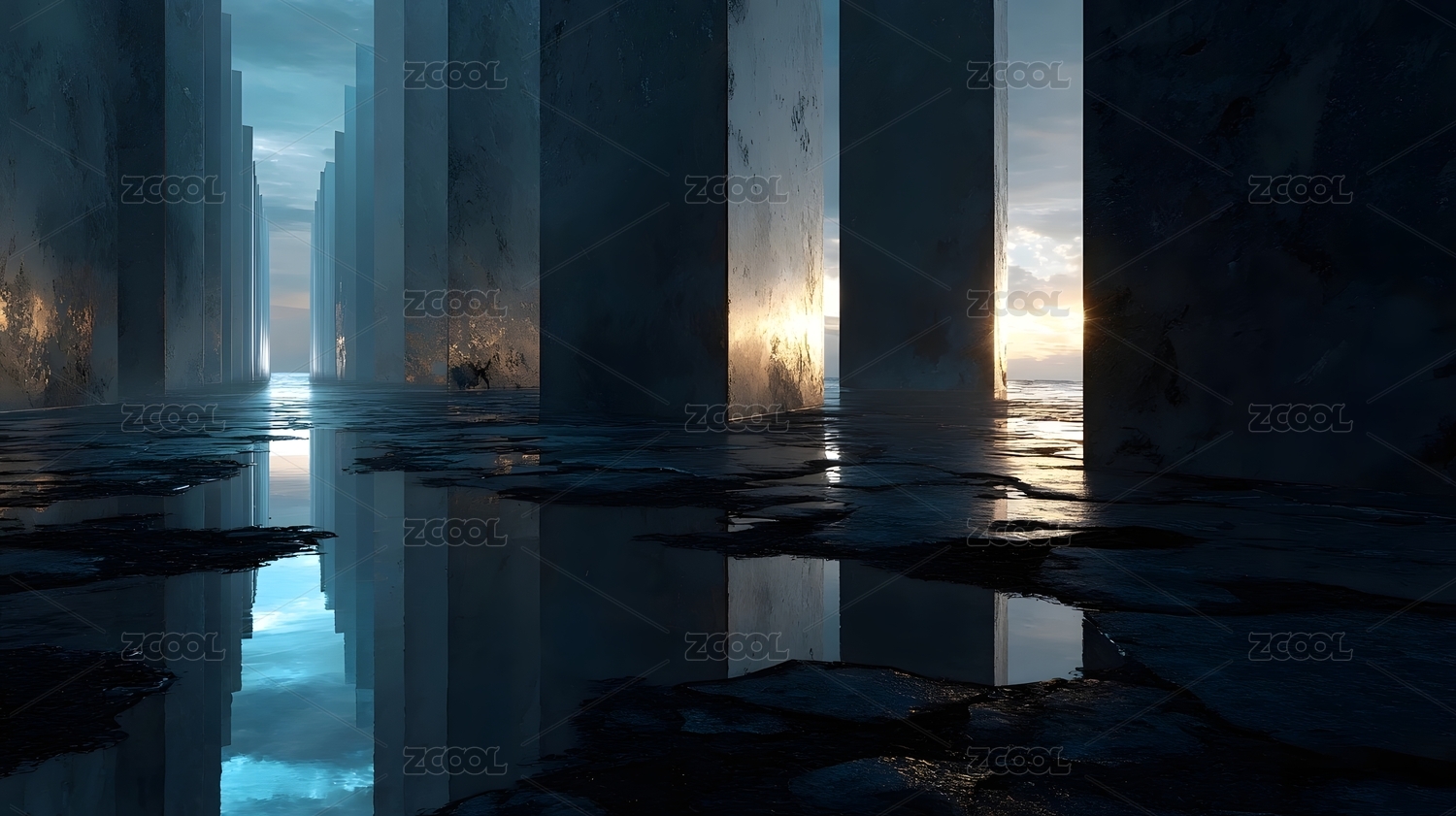 神秘巨柱阵列与光影
