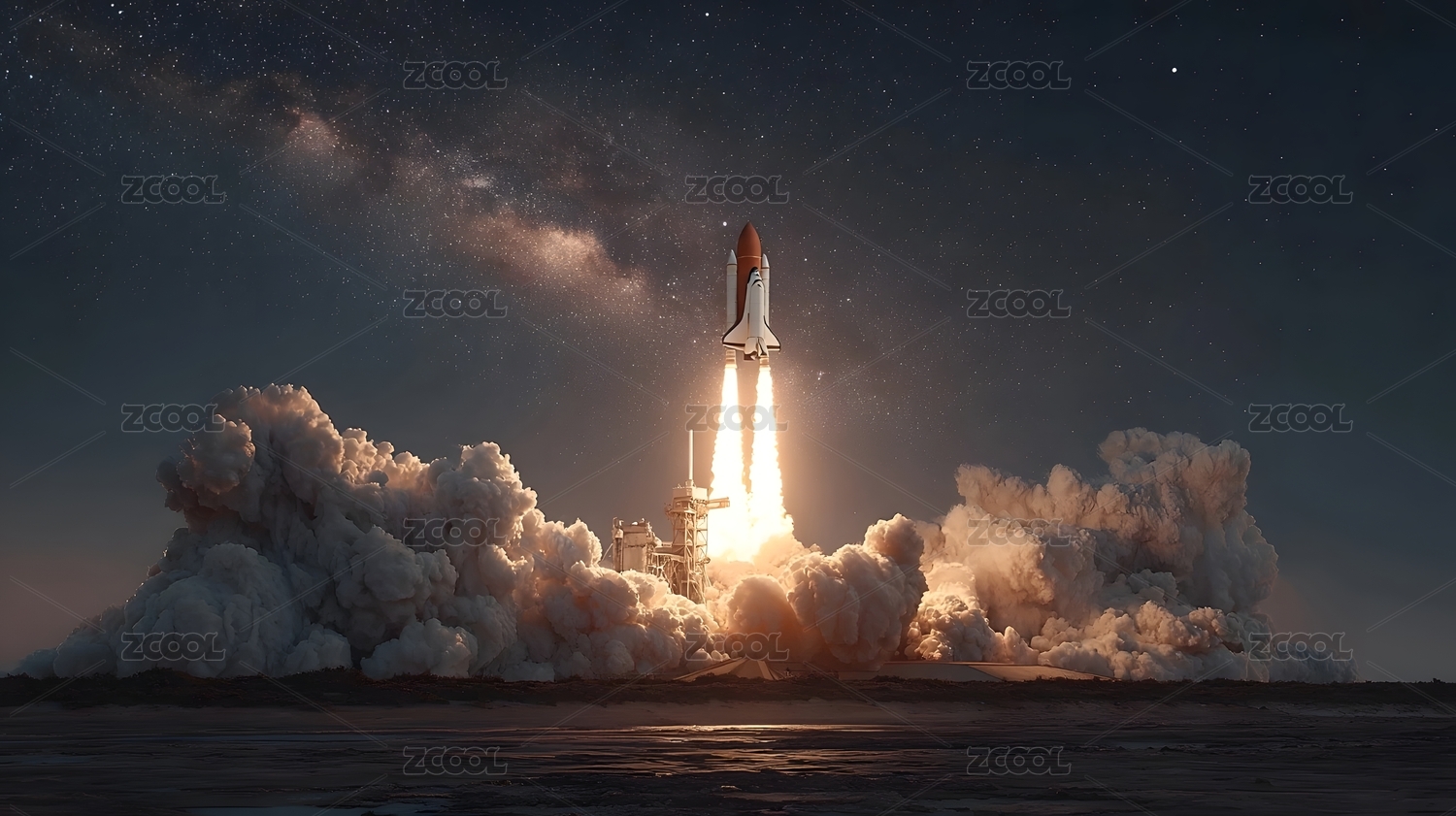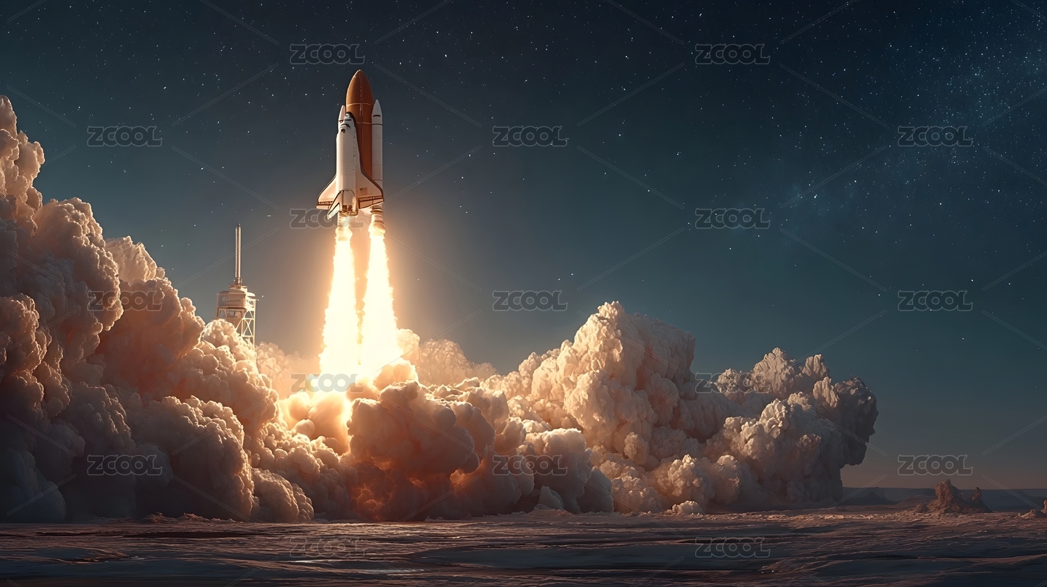 火箭升空夜空星云