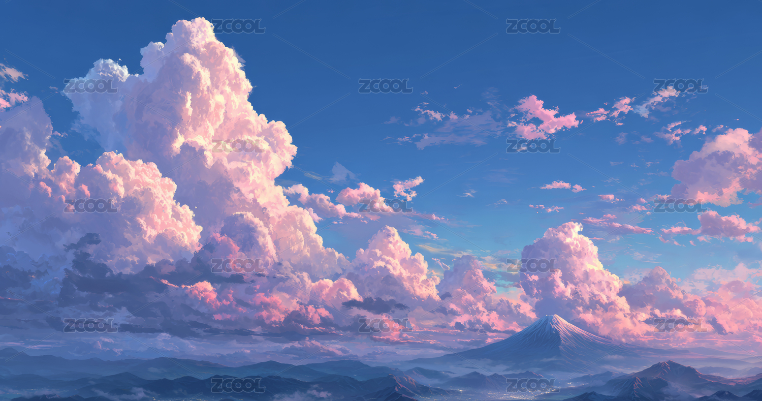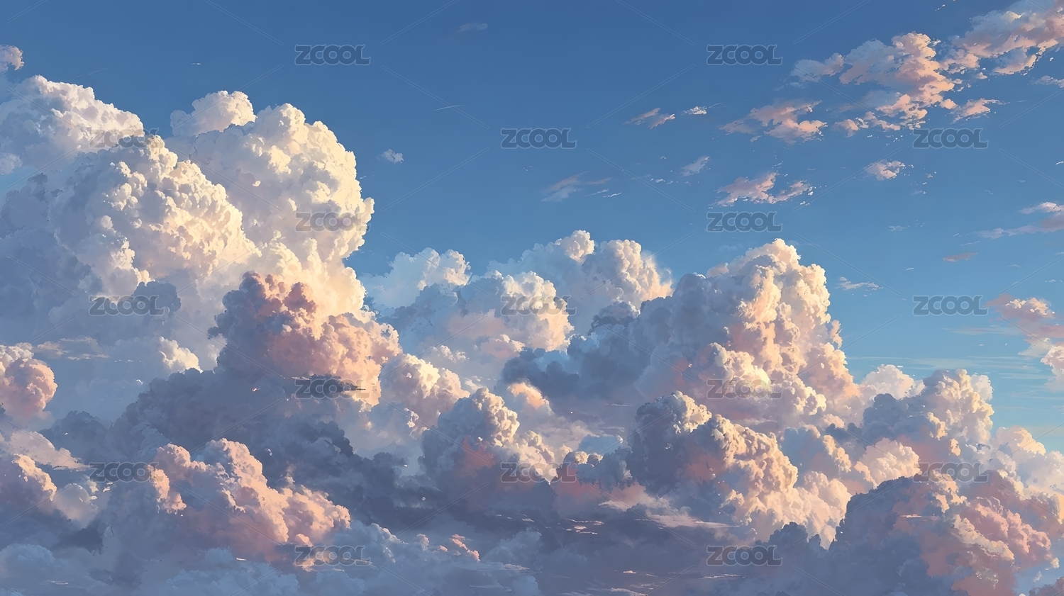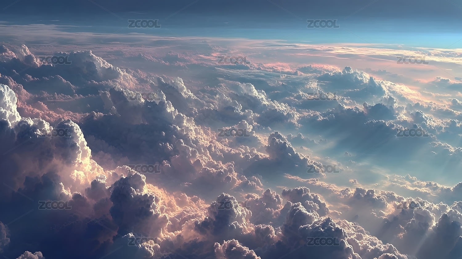 阳光穿透云层,蓝天白云,自由飞翔的鸟儿