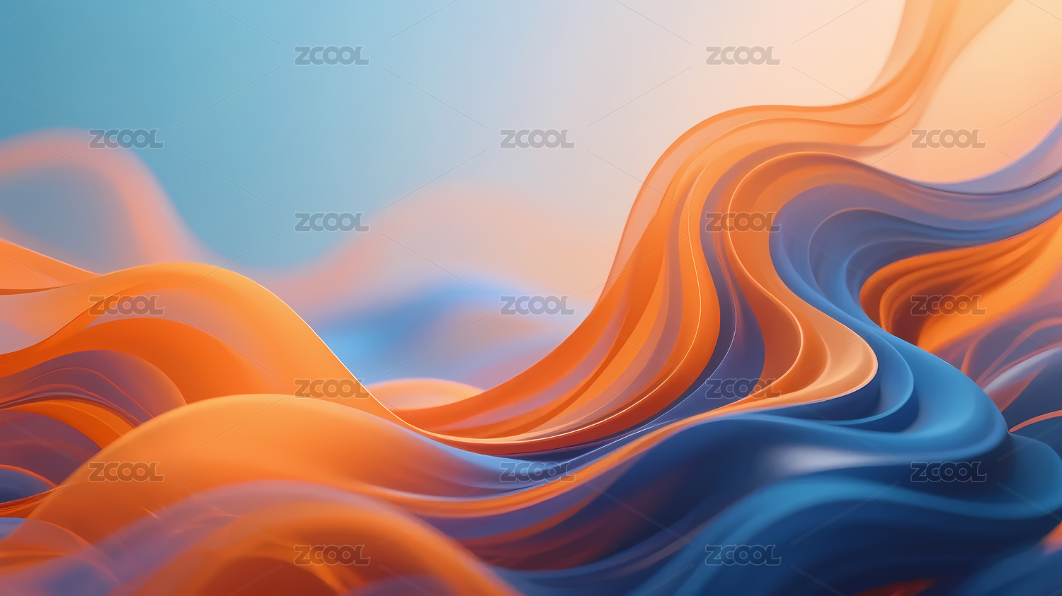 数码橘蓝色渐变层叠波浪抽象图形海报背景