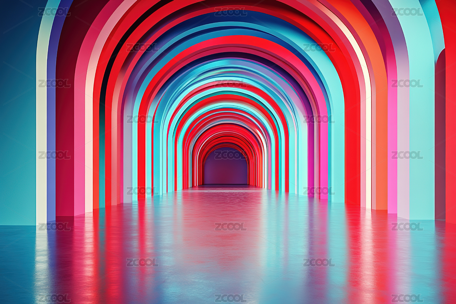 色彩缤纷霓虹拱形隧道