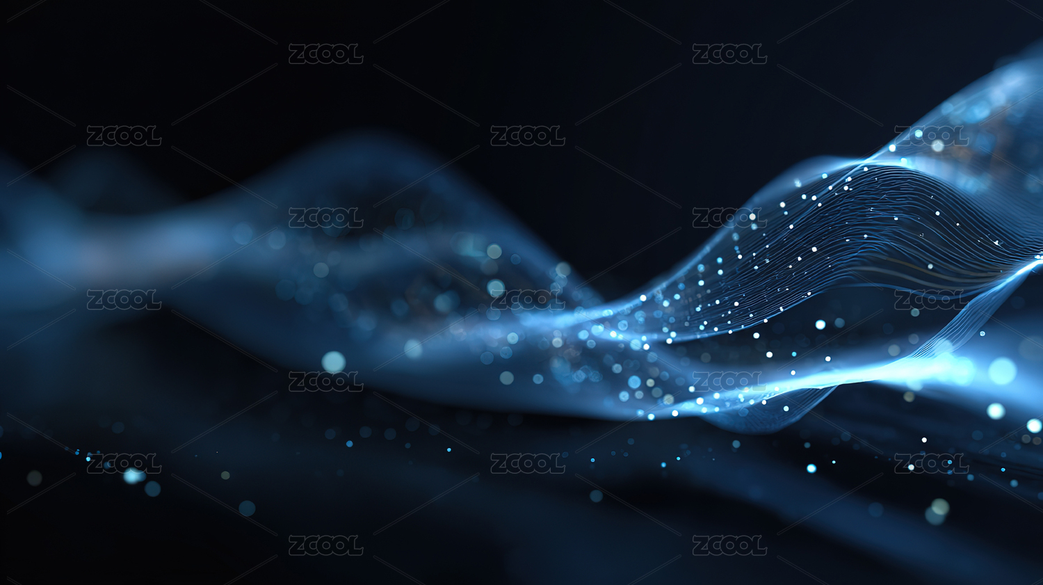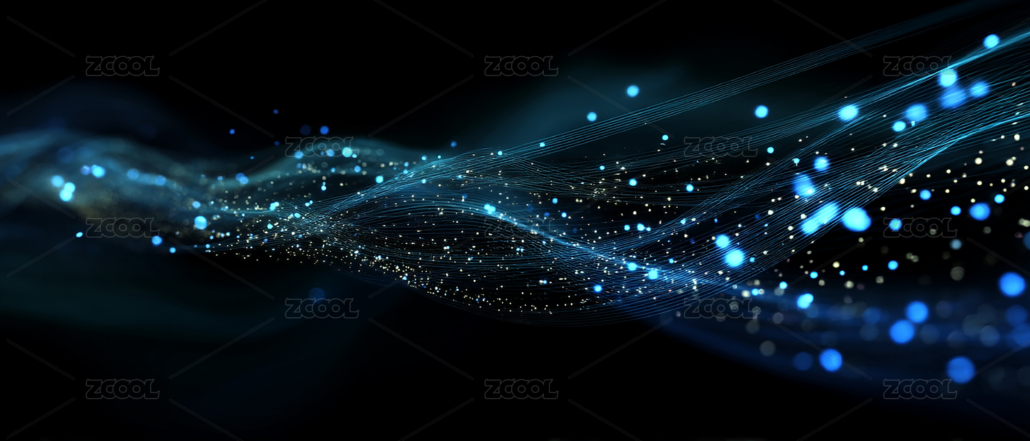 蓝色粒子光波流动,抽象科技感