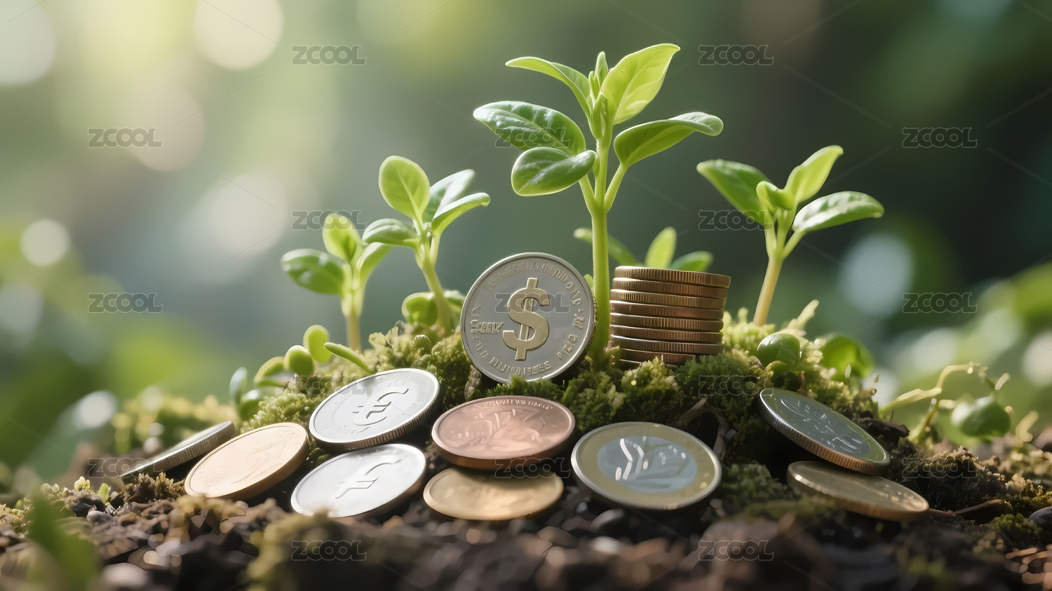 主视觉,商业,壁纸,场景,硬币,金融,堆叠,箭头,上升,植物