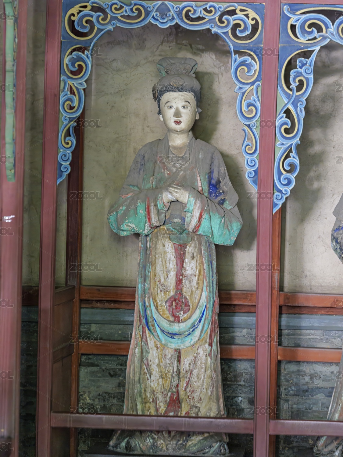 山西晋祠圣母殿彩绘雕塑 侍女像的特写