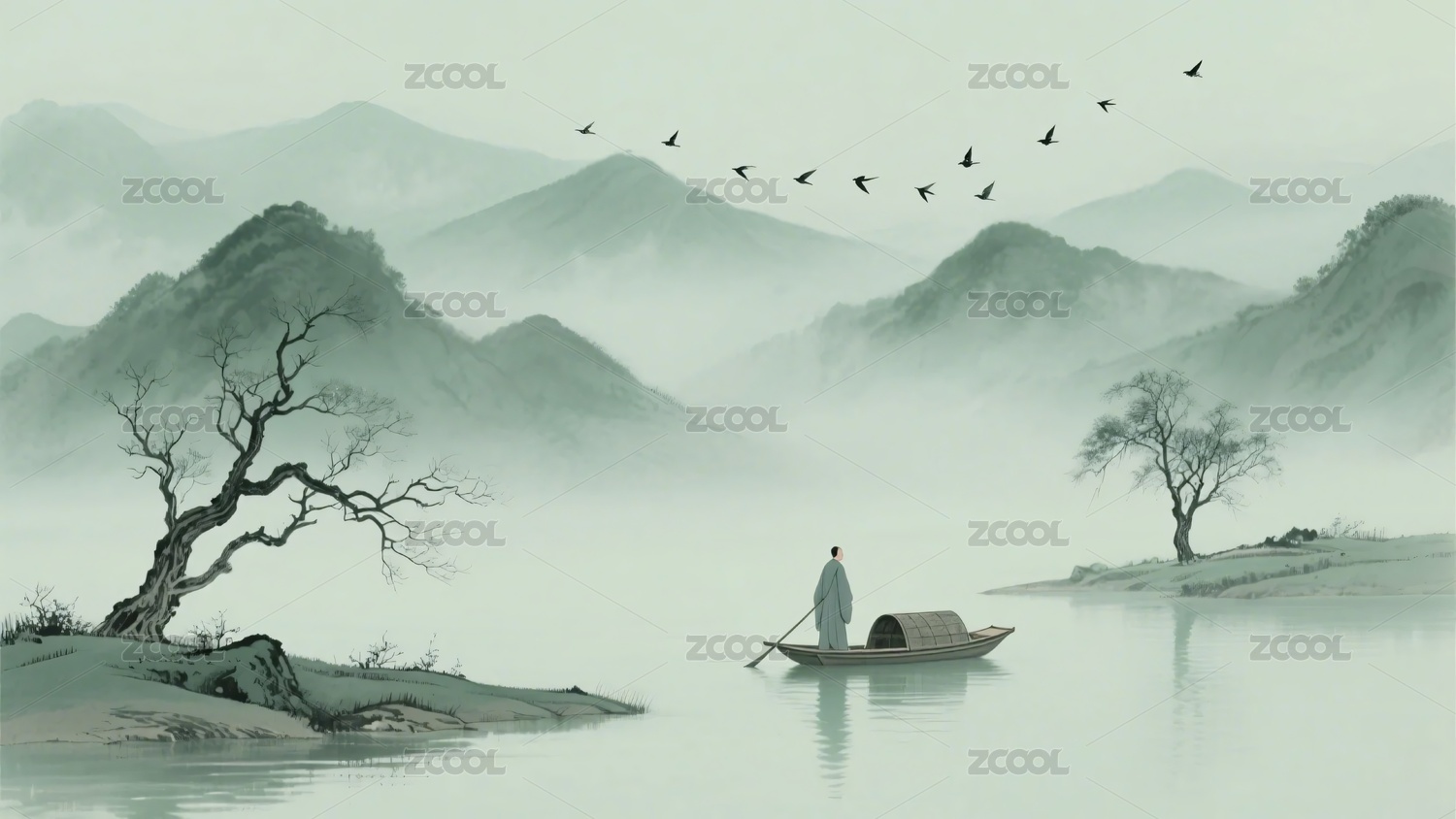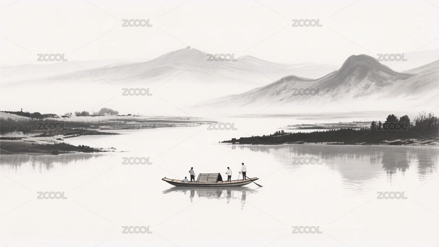 山水,人物,小舟,古装,水墨画,插画,意境,自然,风景,传统
