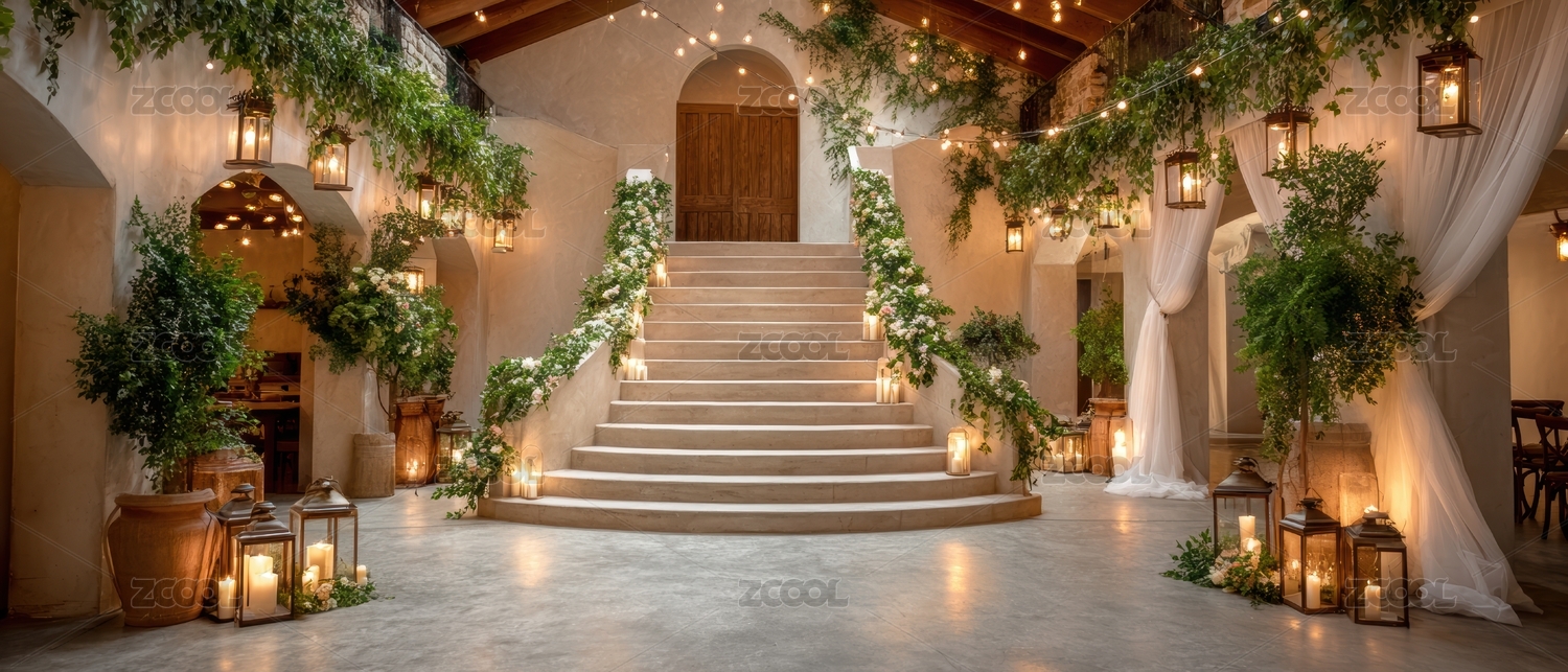 别墅窗边盛开着浪漫唯美的玫瑰花背景墙