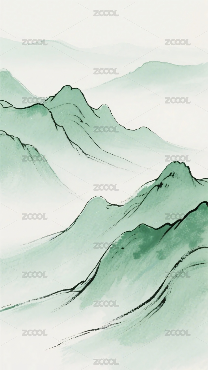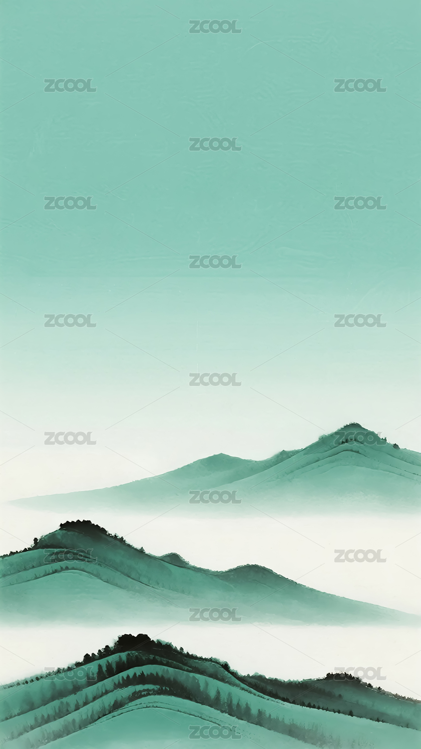 水墨风格青绿山峦插画
