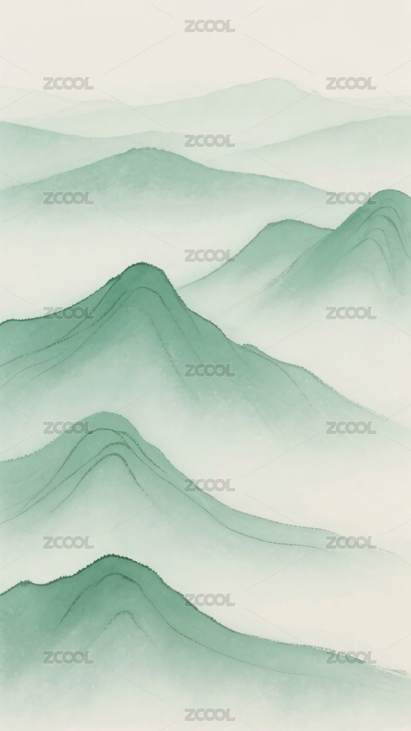 水墨风格绿色山峦插画