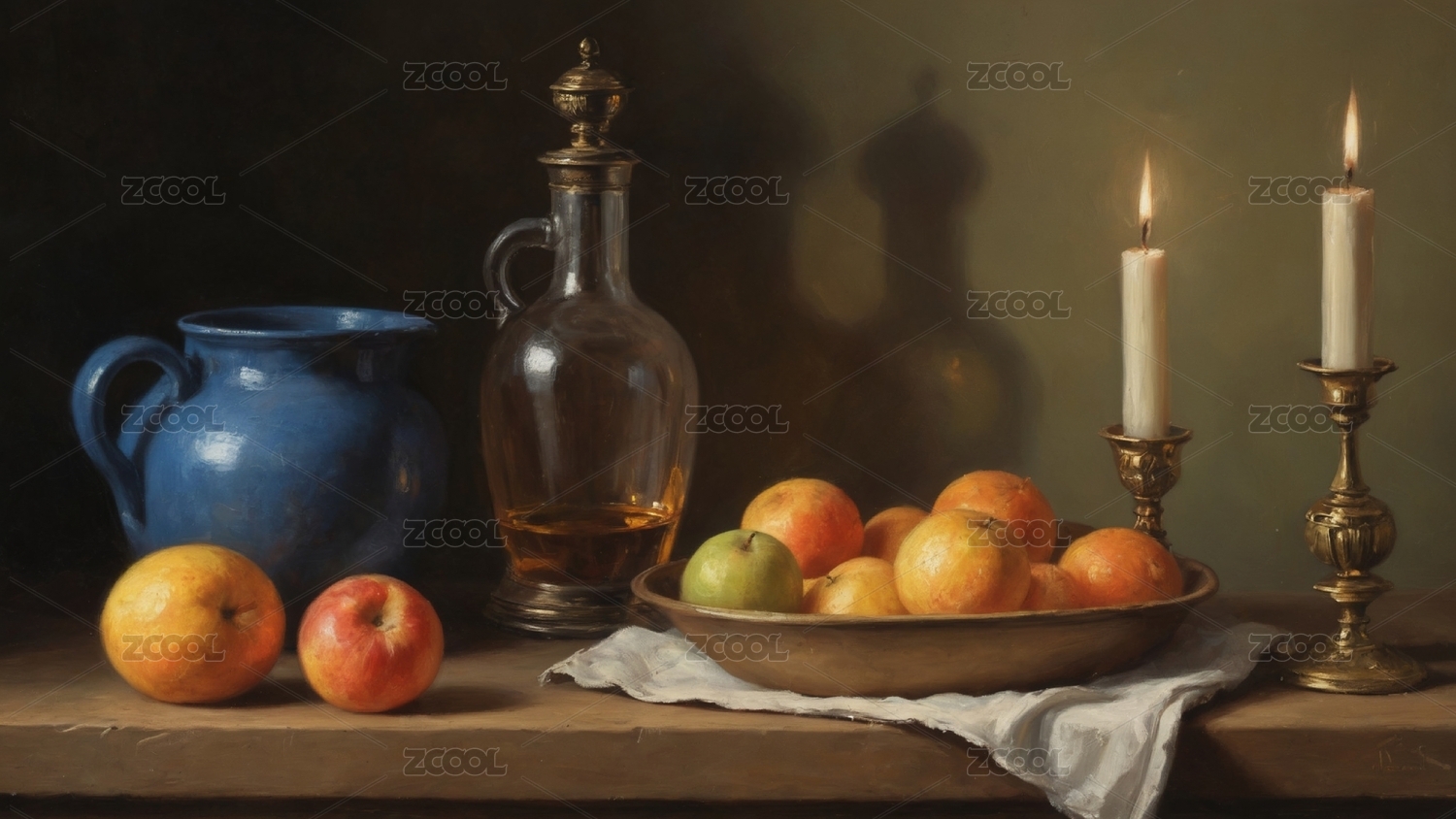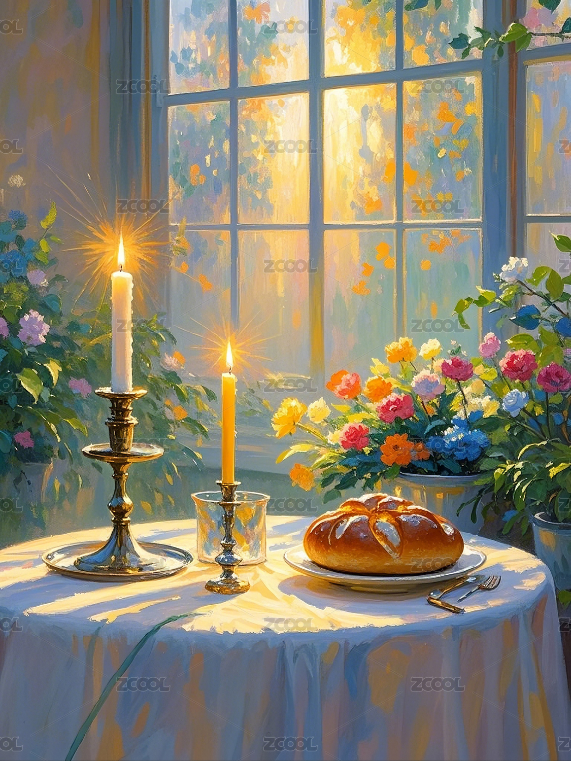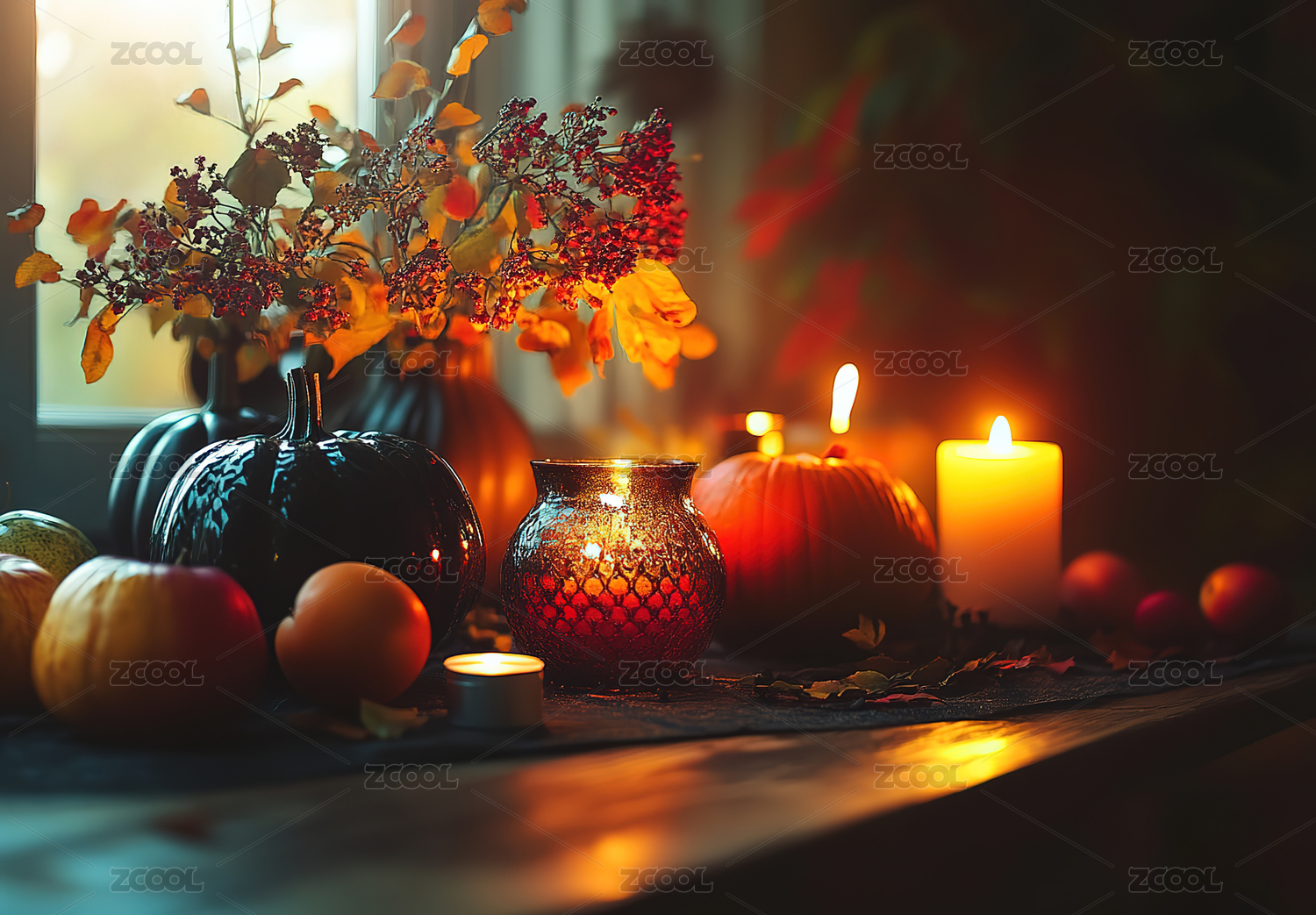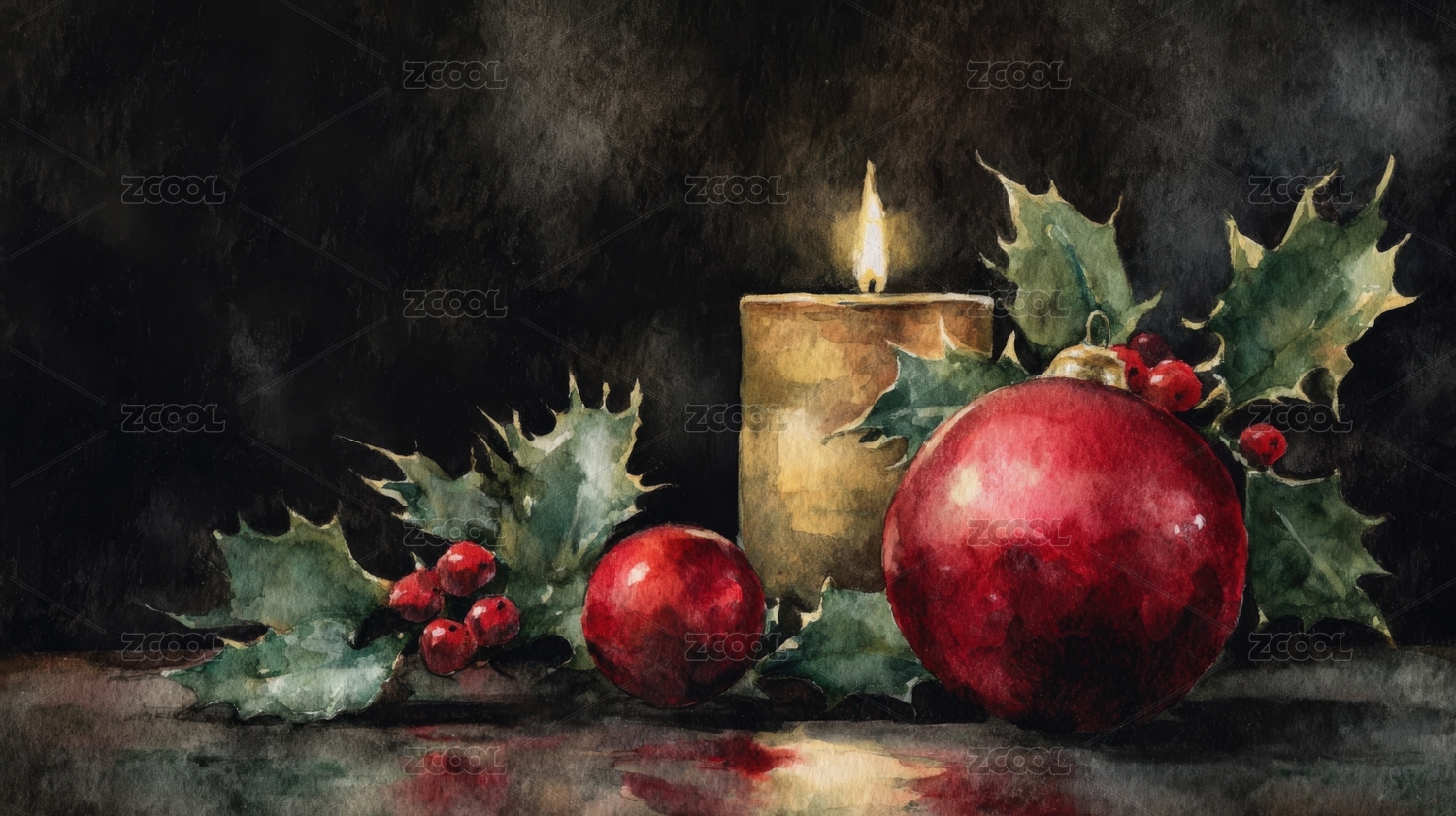 圣诞节期间桌上点亮的蜡烛的特写镜头