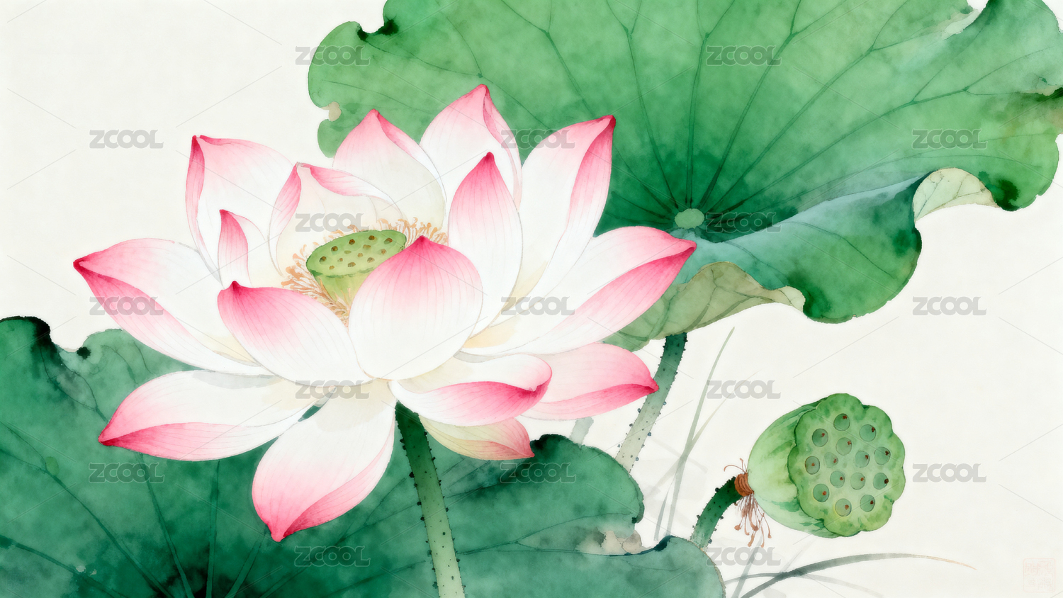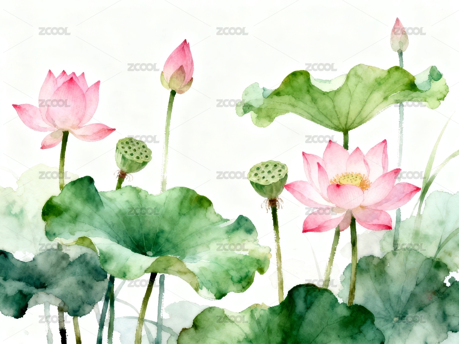 荷花水彩装饰背景