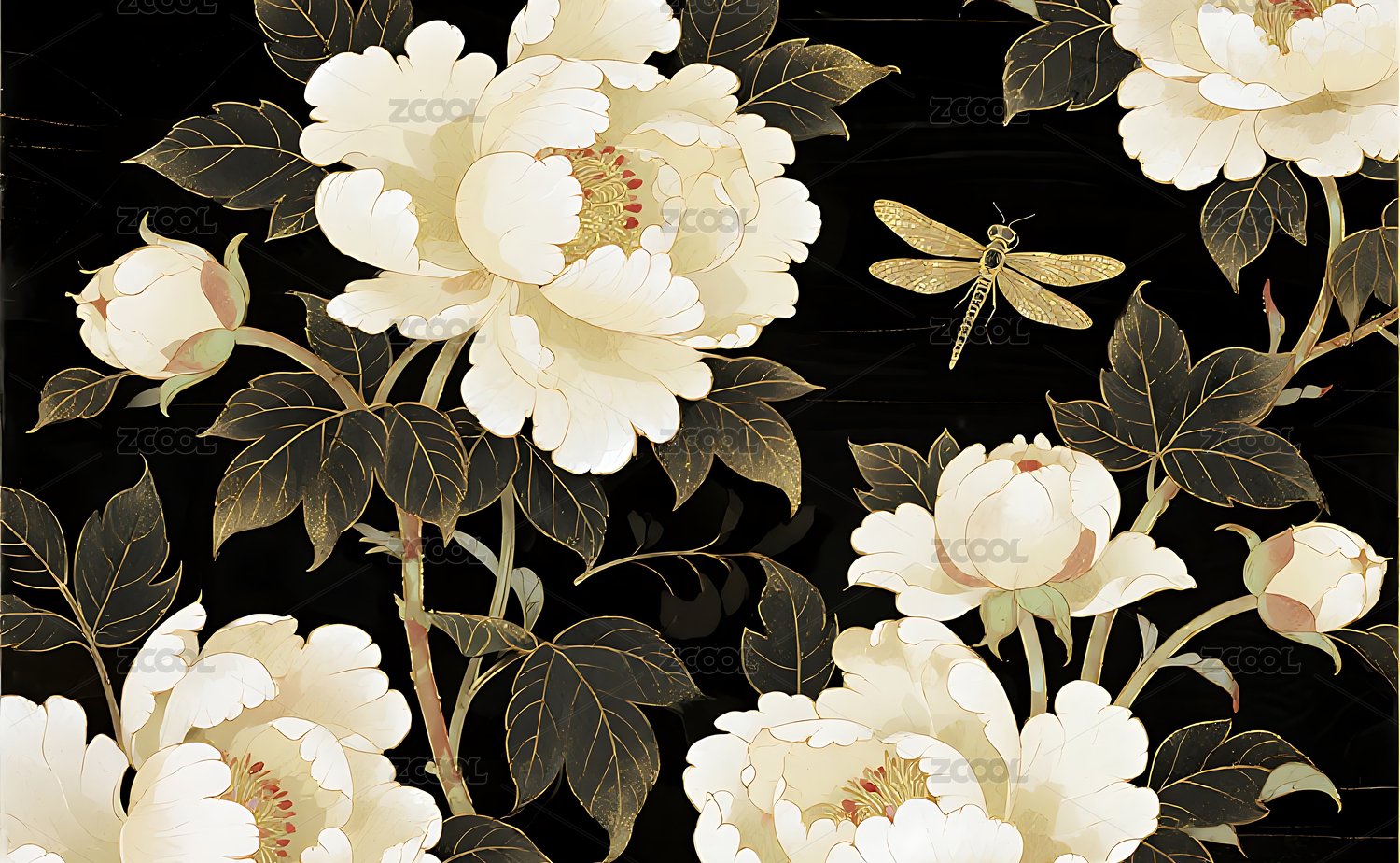 中国工笔线描牡丹花背景