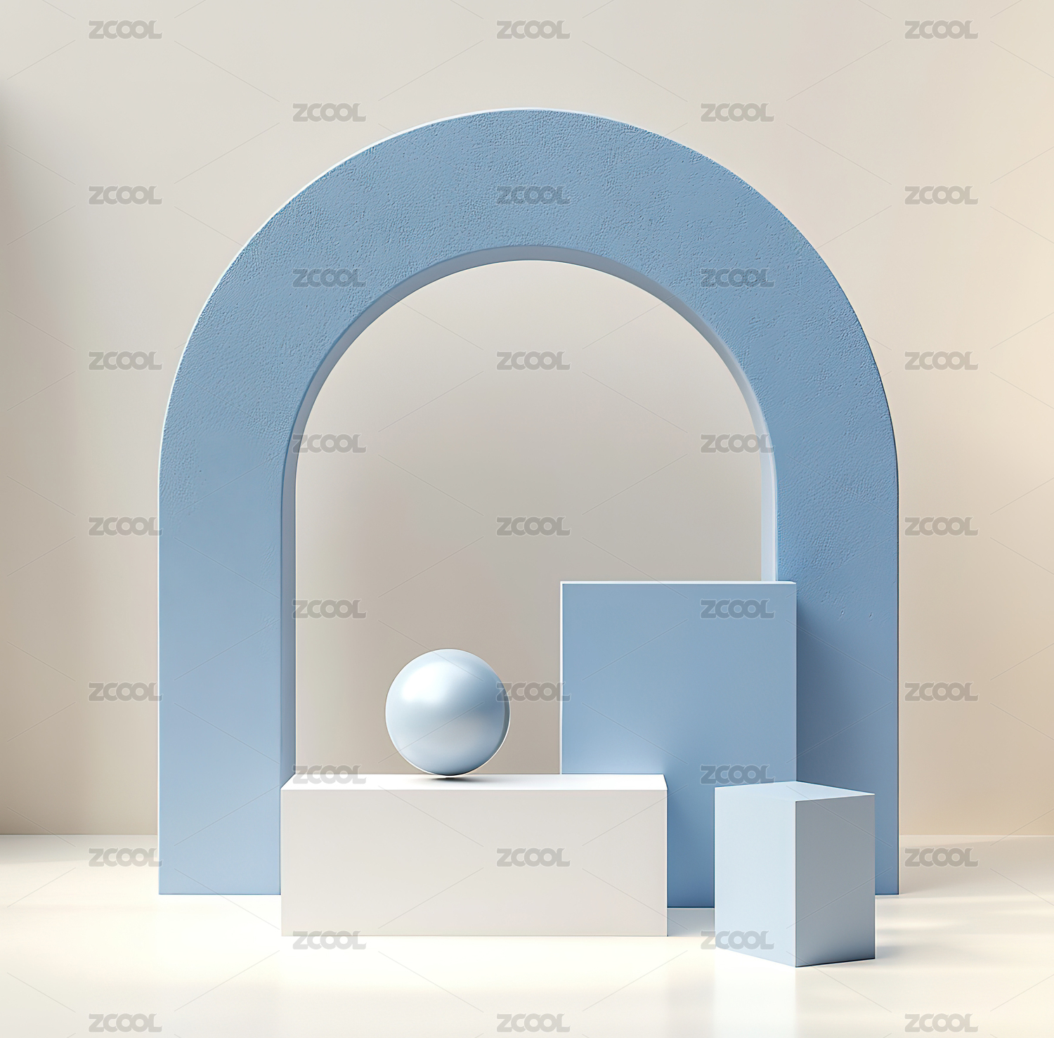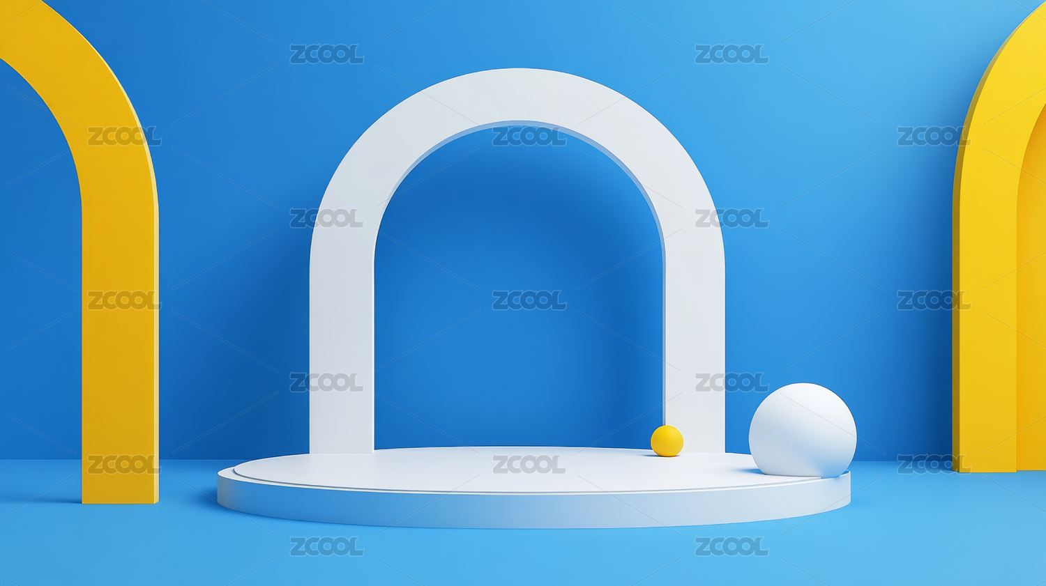 黄色拱形结构置于蓝色背景