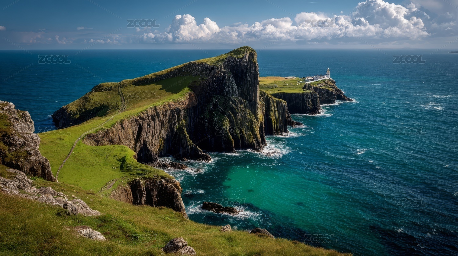 海浪,海岸,悬崖,海蚀洞,绿色植被,自然风光,海洋,岩石,波涛,峭壁