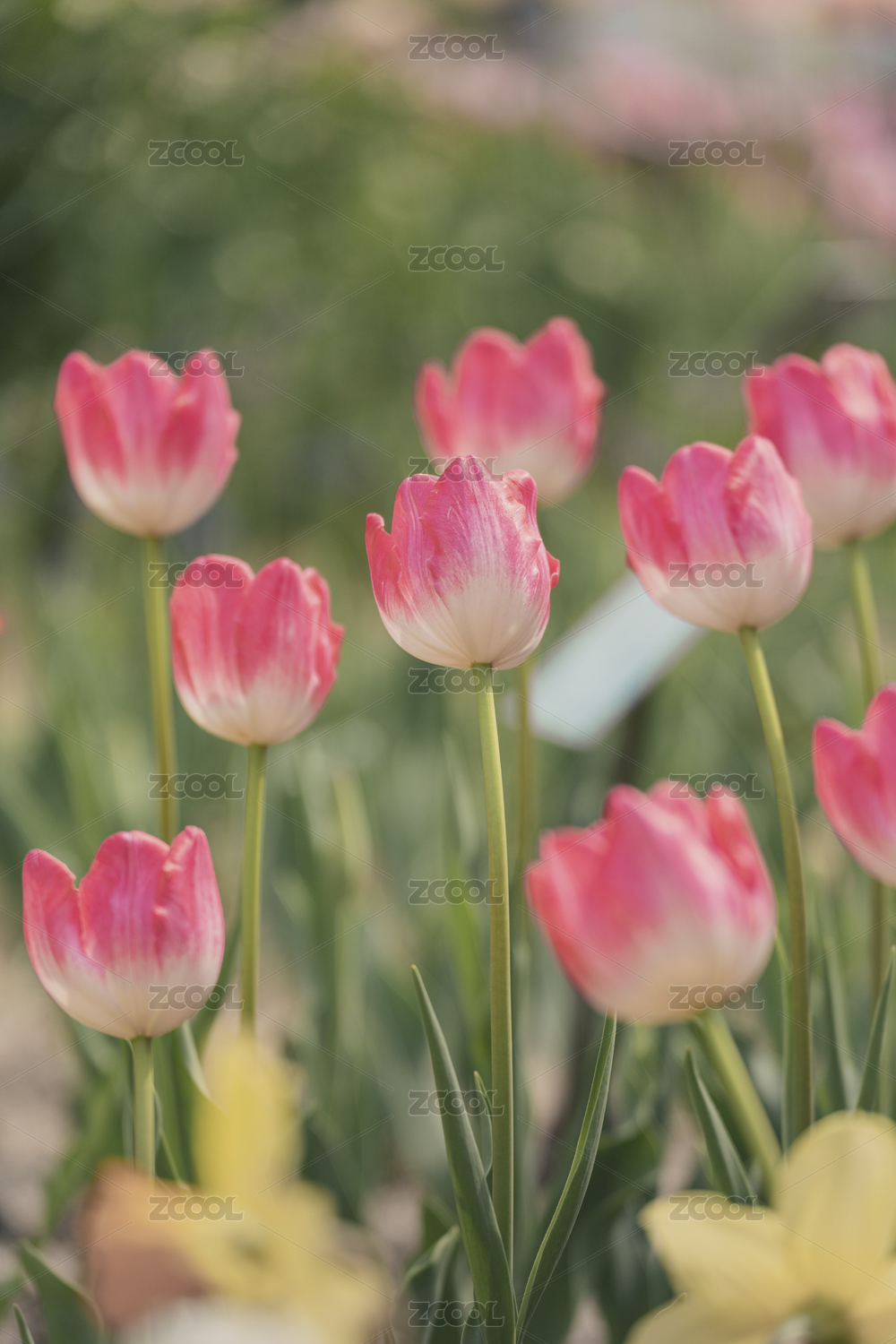 春天,郁金香,红色,花朵,花园,粉色,黄色