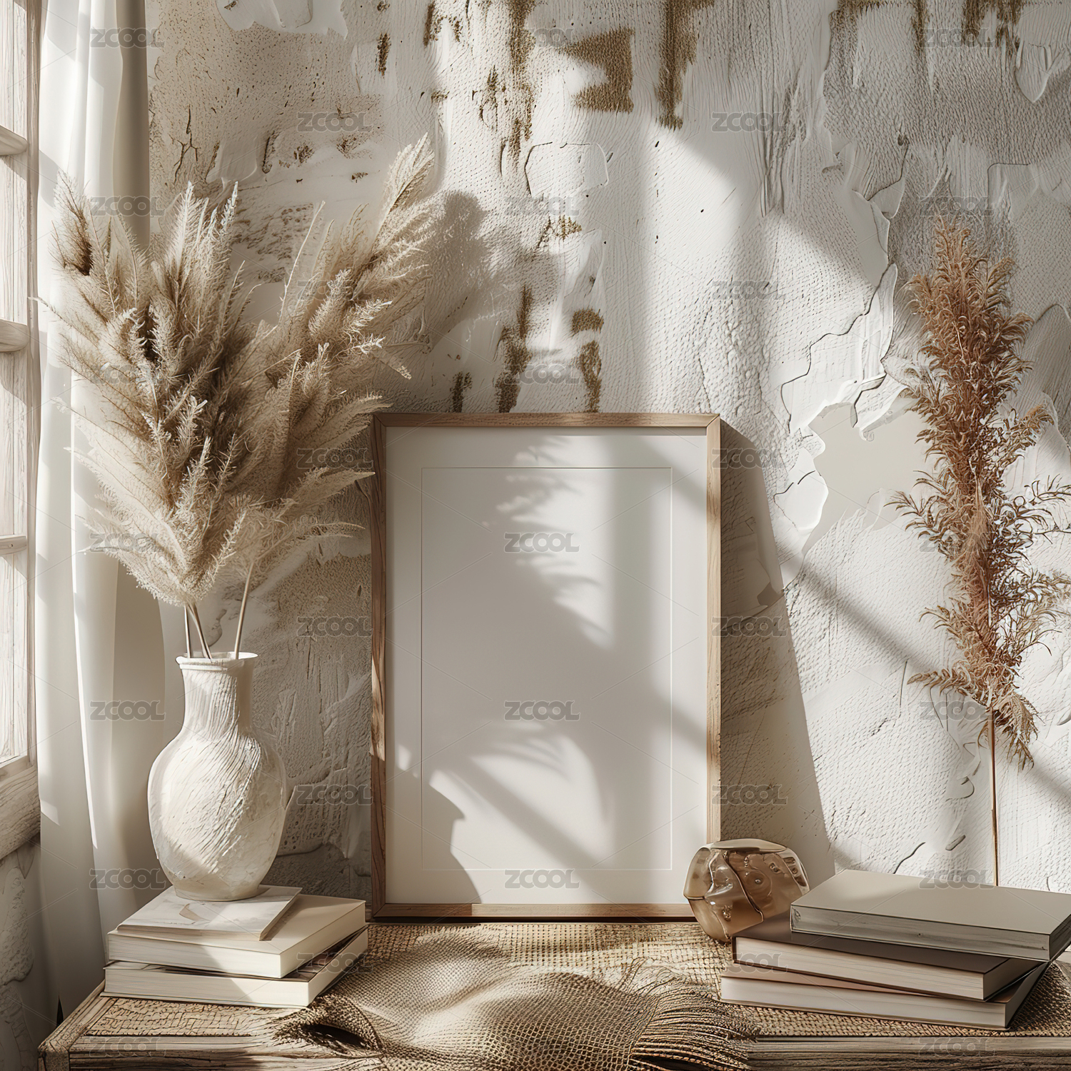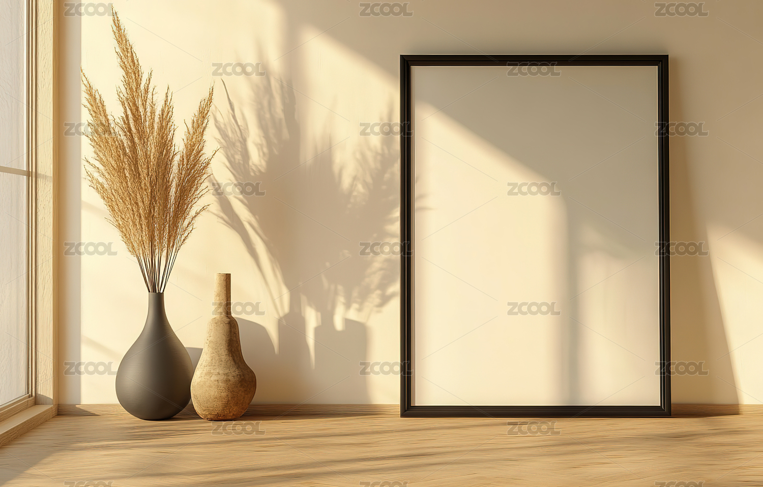 简约相框书桌台灯纯色背景商业广告海报壁纸