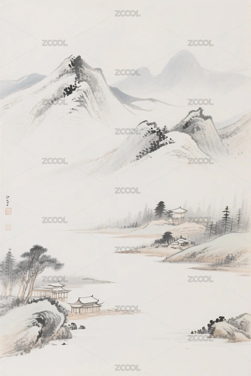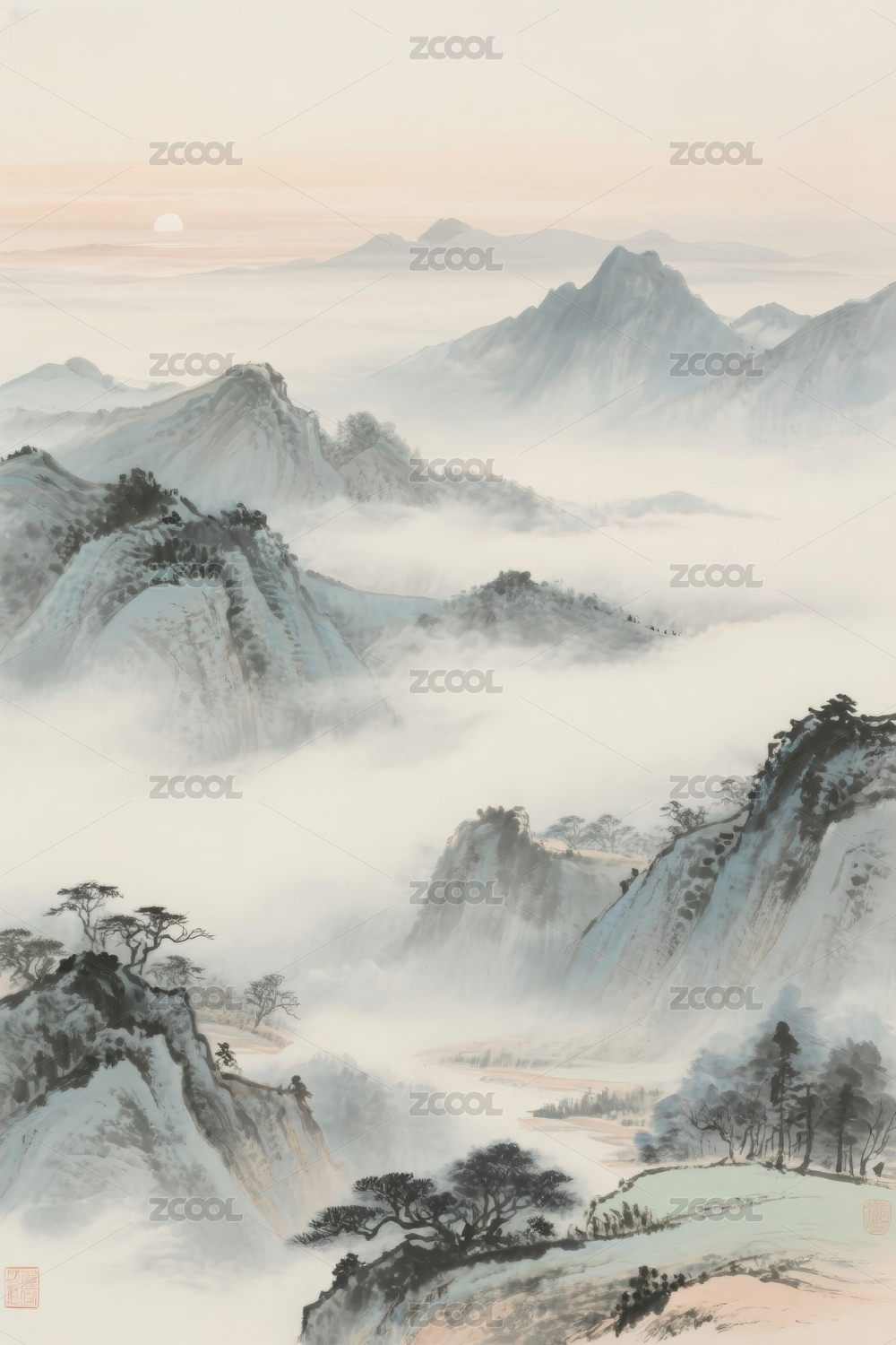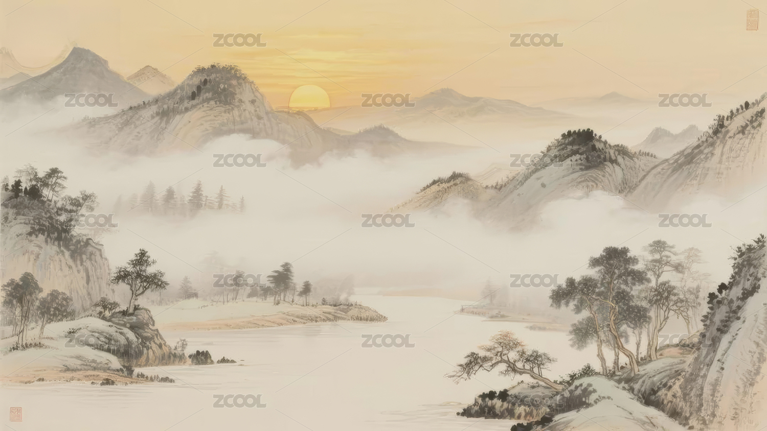 云雾, 自然, 艺术, 风景, 宁静, 和谐,山水, 河流, 绘画, 传统