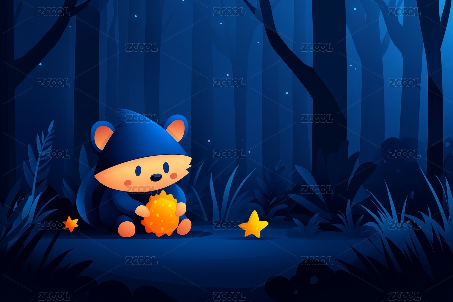 快乐,插画,可爱,卡通,静谧,治愈,手绘,童趣,小熊,篝火