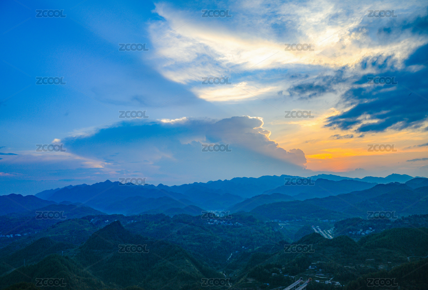 中国,重庆,酉阳,落霞,夕阳,山脉,群山,霞光,金色,黎明