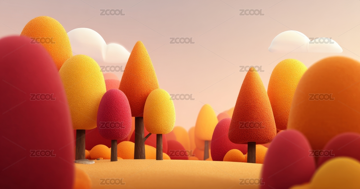 卡通3D秋天风景