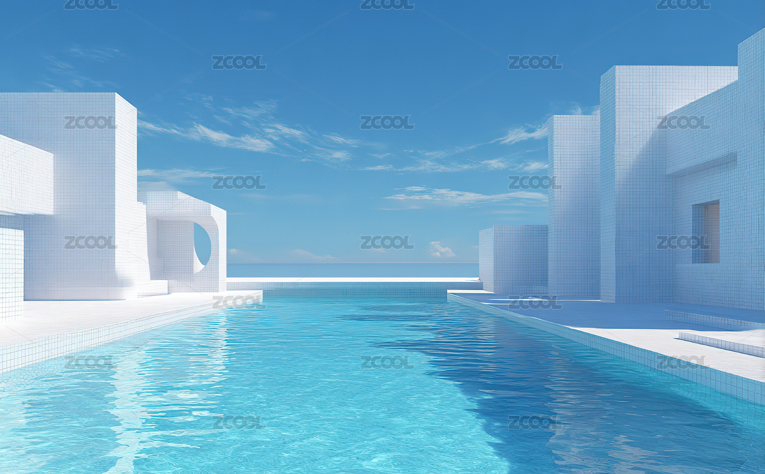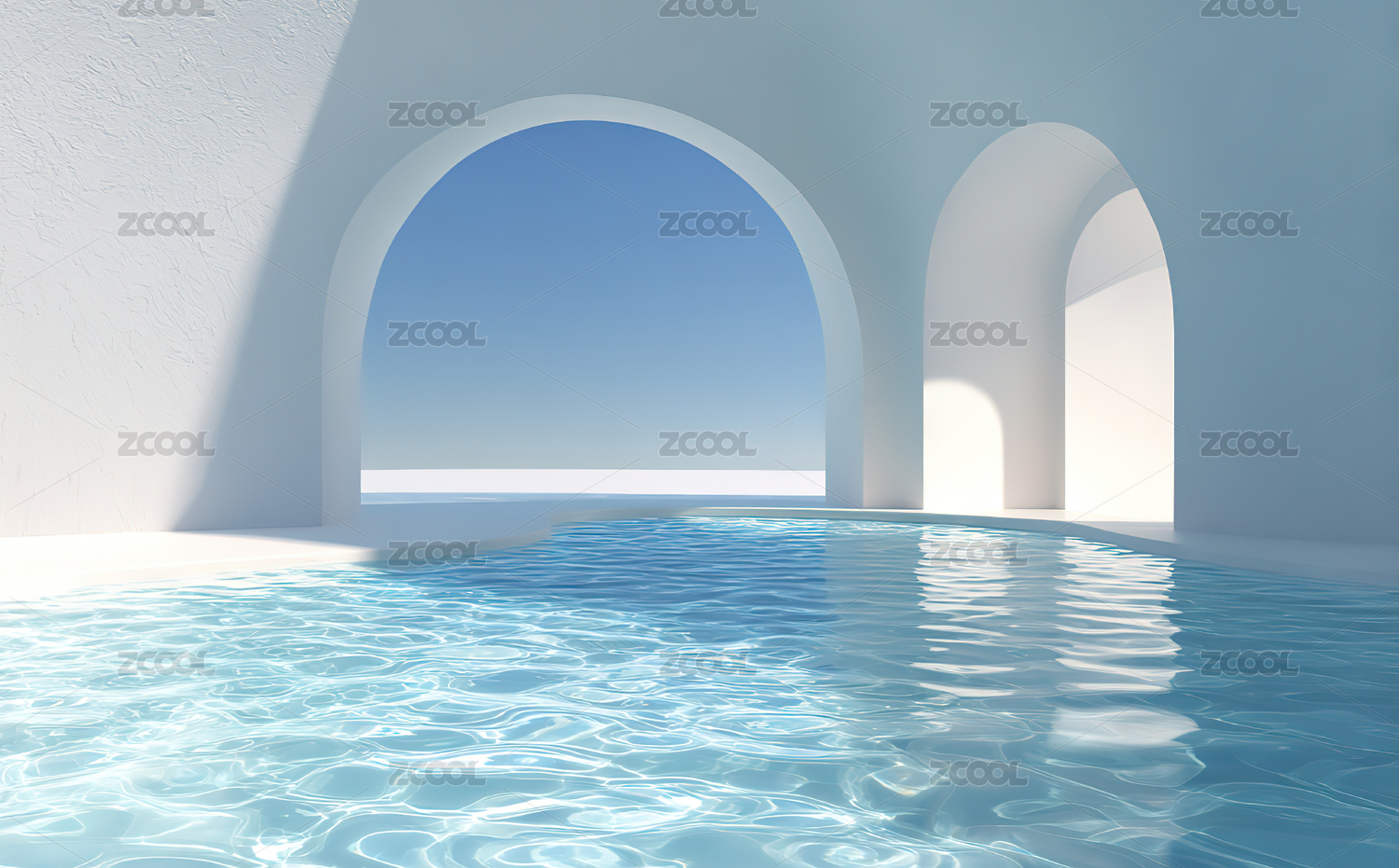 白色,拱门,几何,现代,极简,设计,结构,简洁,建筑,泳池