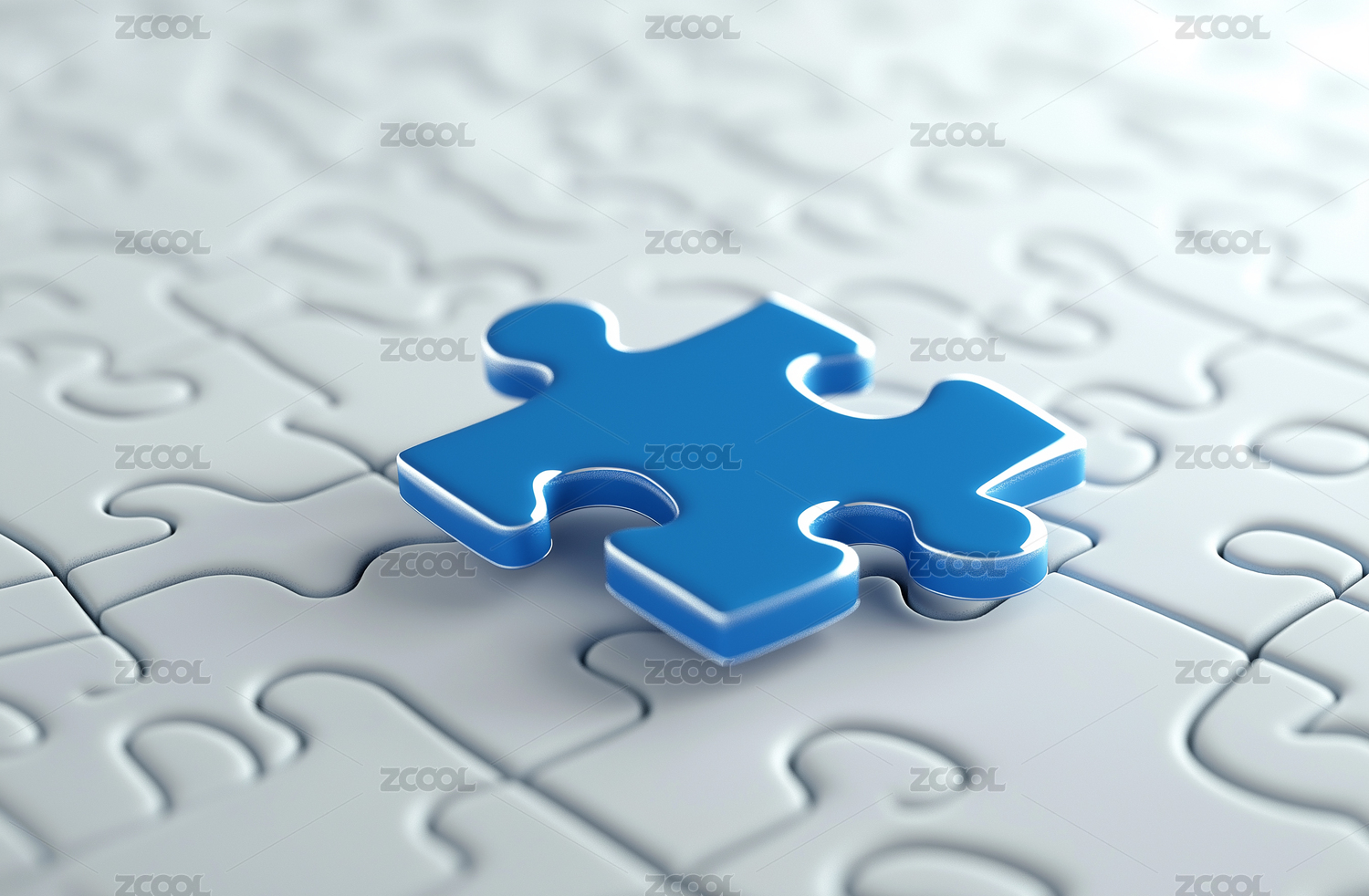蓝色拼图块置于白色拼图背景