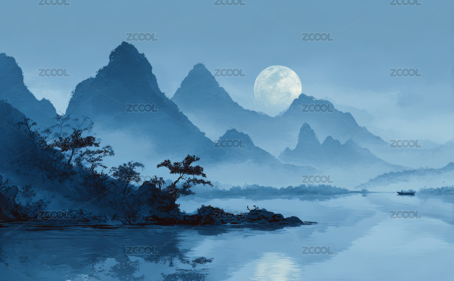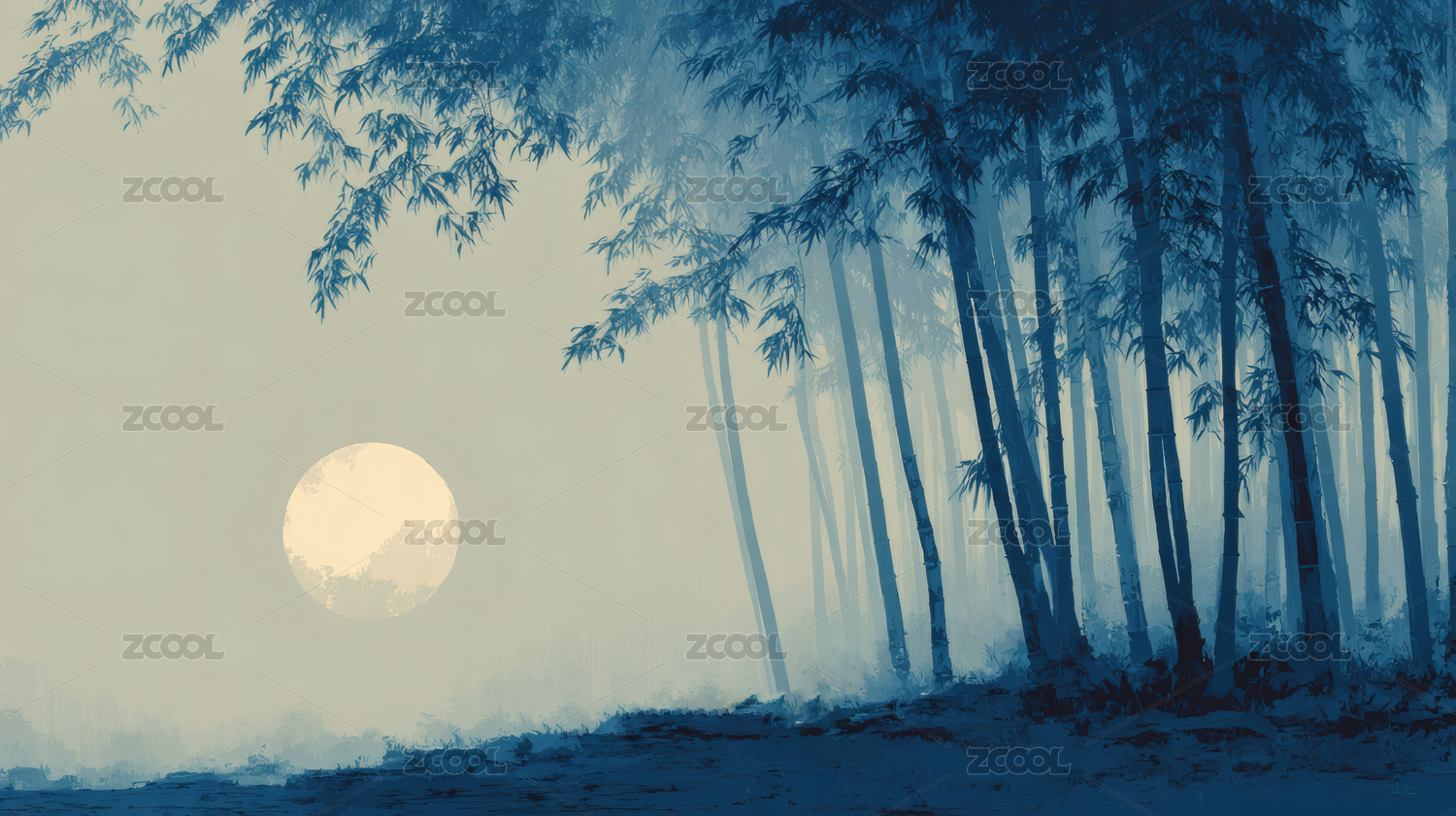 竹林,雾气,月亮,树木,宁静,环境,自然,森林,朦胧,晨光