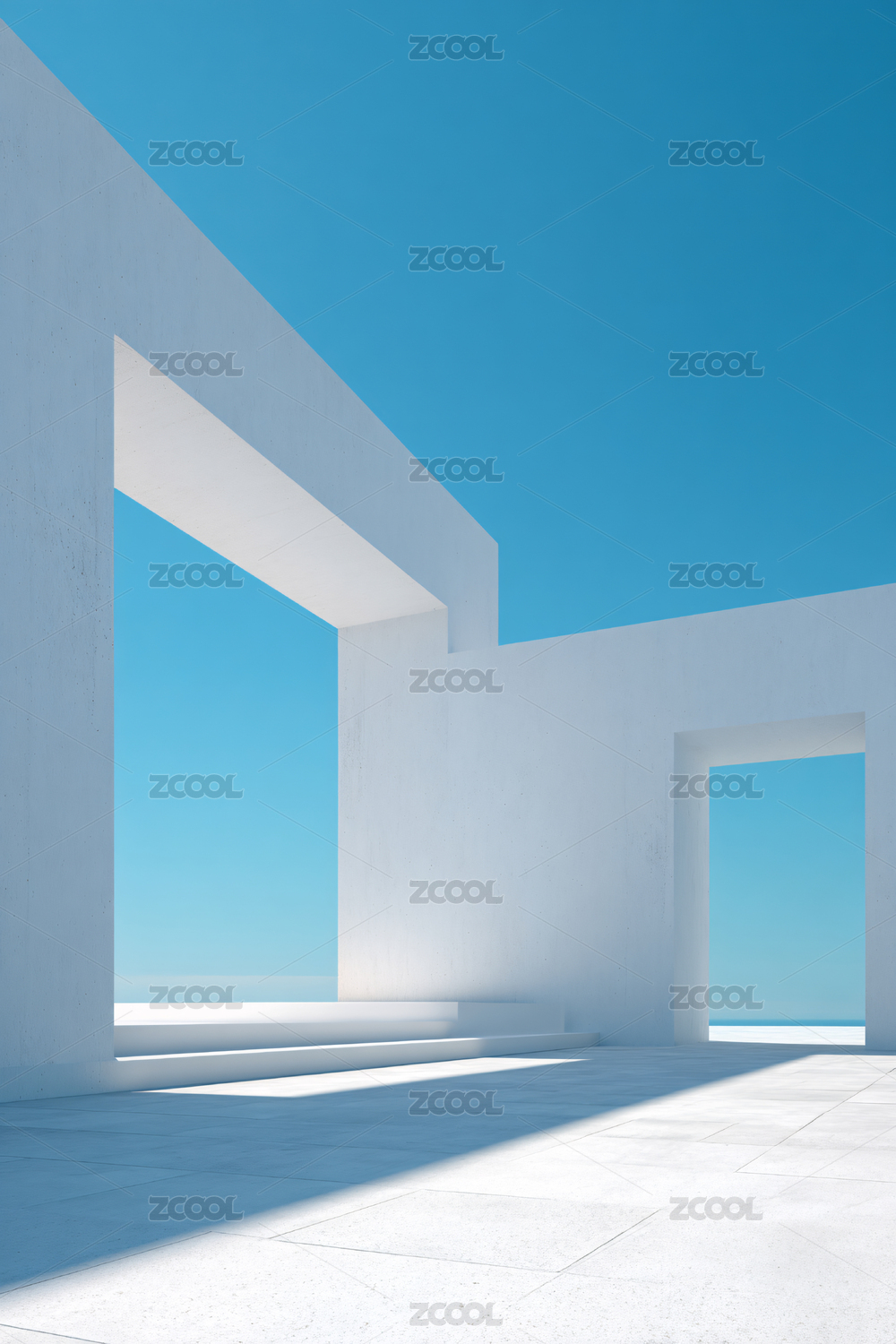 建筑,白色,蓝天,现代,结构,光影,几何,简洁,设计,户外