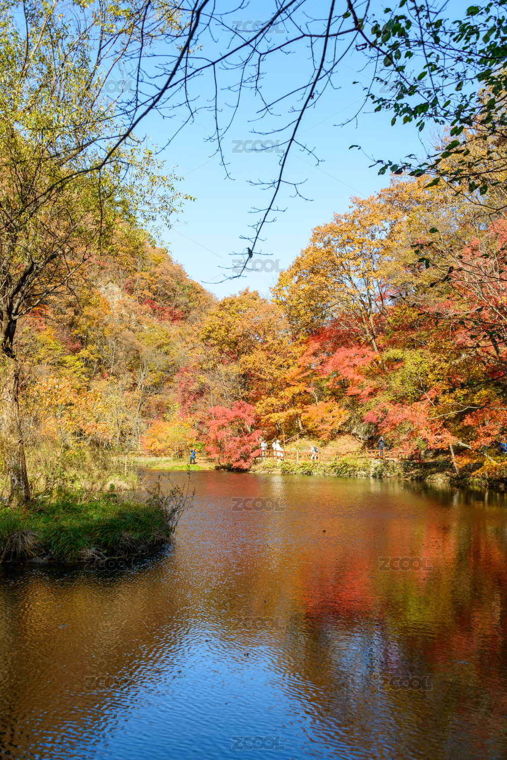 辽宁本溪大石湖风景名胜区秋天红枫景色