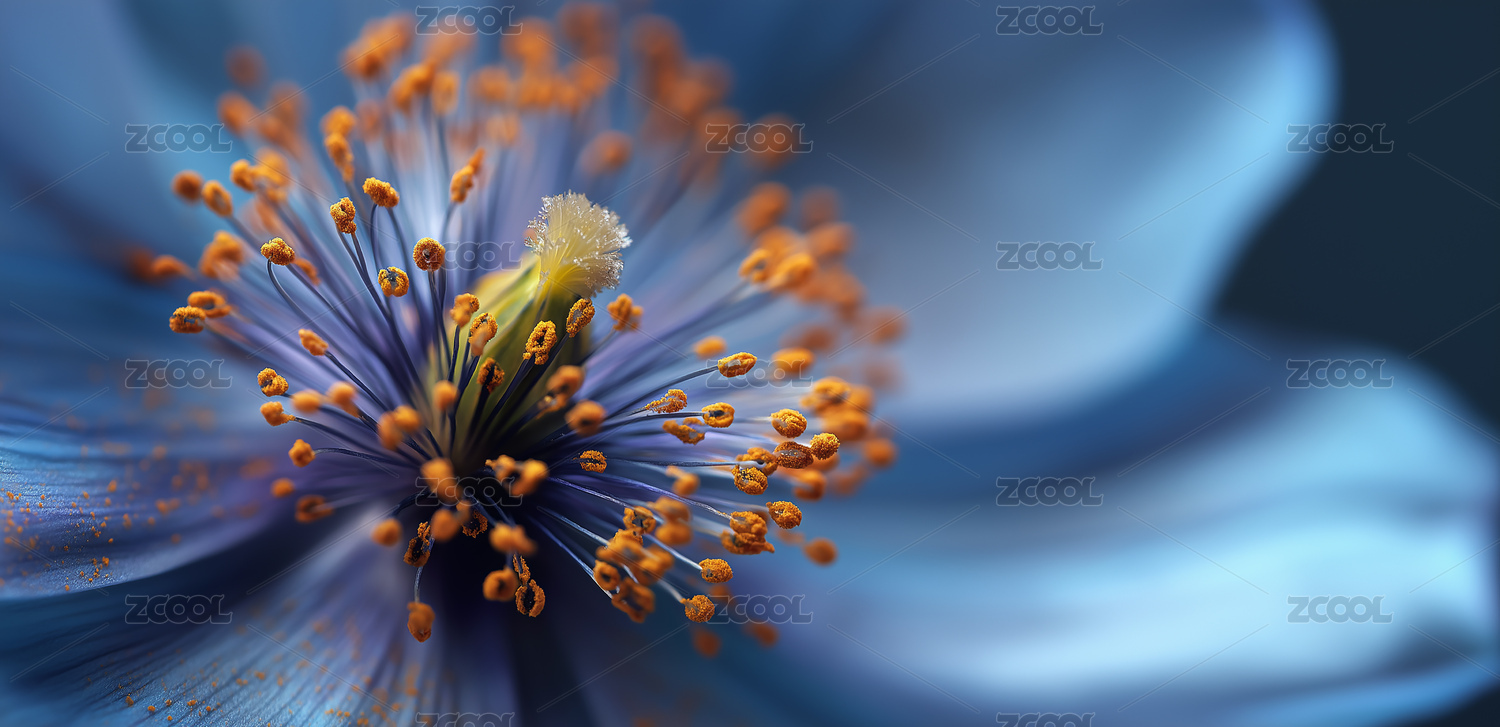 特写蓝色花朵花蕊橙黄花粉呈现微观植物之美