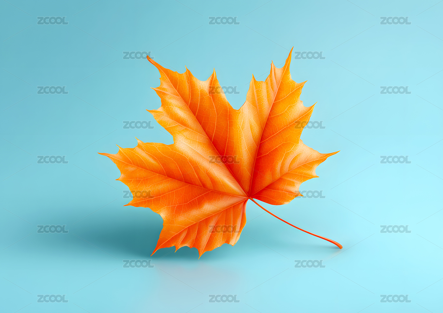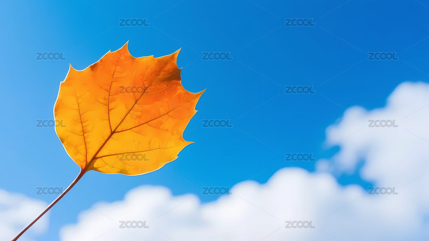 蓝色,简洁,叶子,秋天,橙黄,自然,美感,清新,植物,纯净