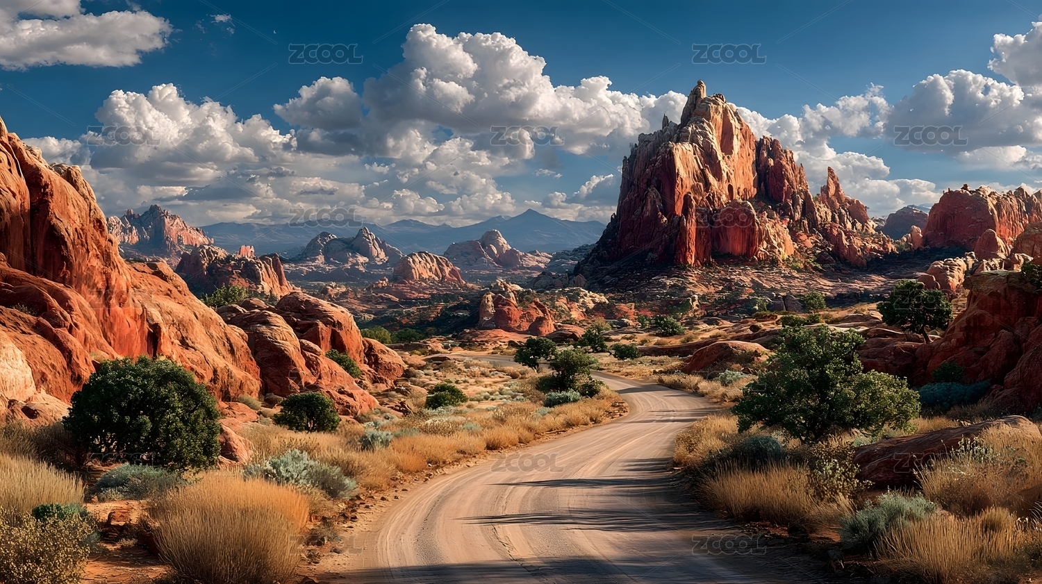 道路,自然,云,天空,山脉,山峰,岩石,植被,草,沙漠