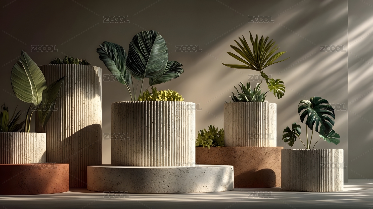 极简水泥圆柱与绿植装饰